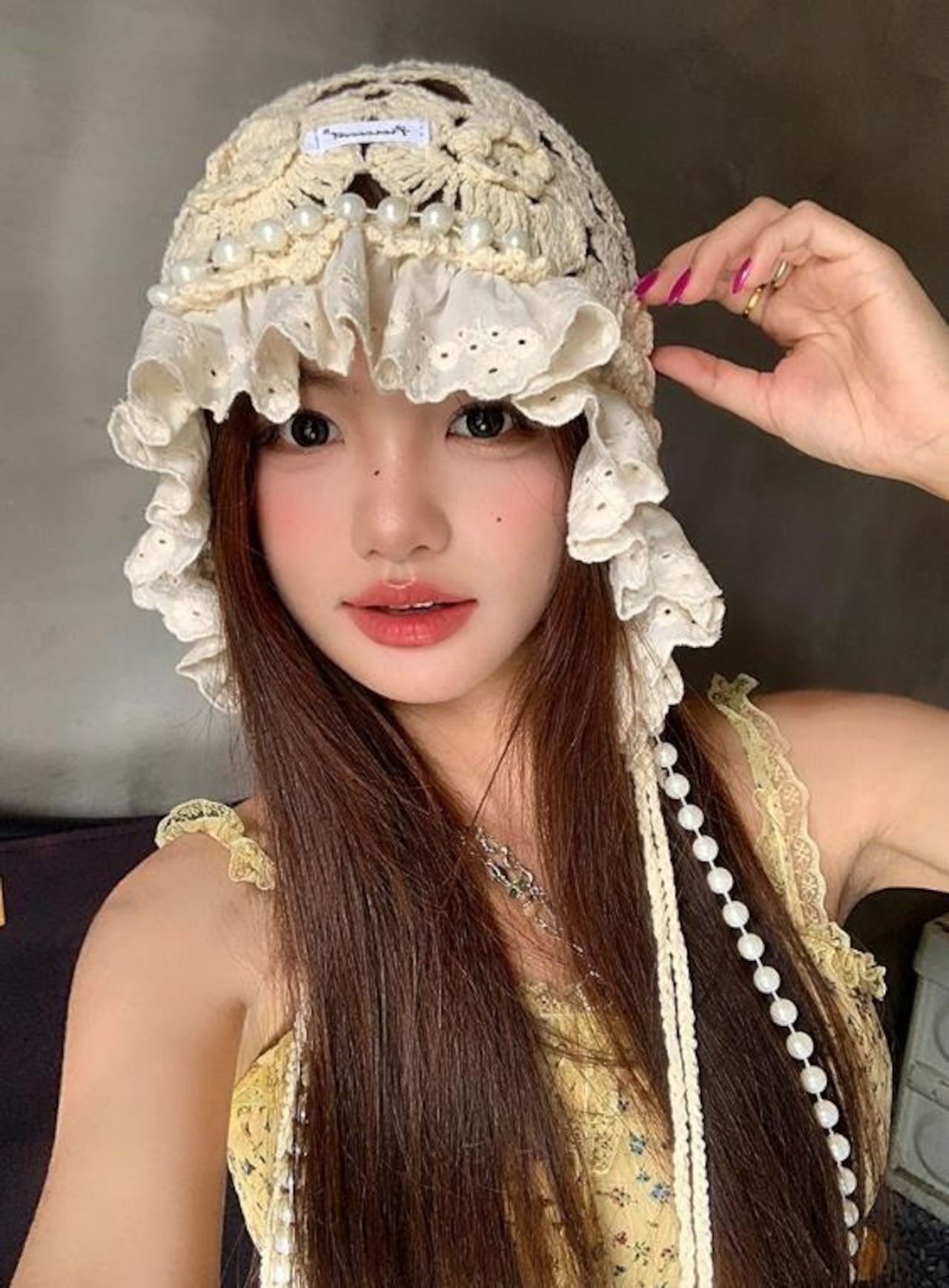 上品で可愛らしい印象を与えるレース編みニット帽。