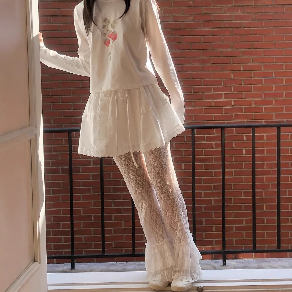 軽やかなレースが印象的で、コーディネートに特別なアクセントを加えてくれるアイテムです。
