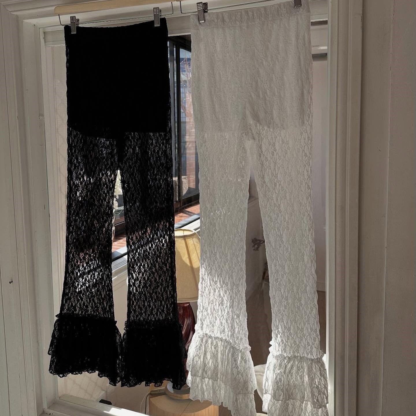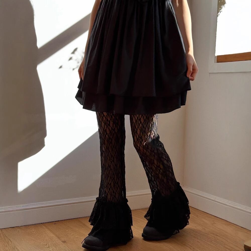お洒落で洗練された印象を与えるレースレイヤードパンツ。