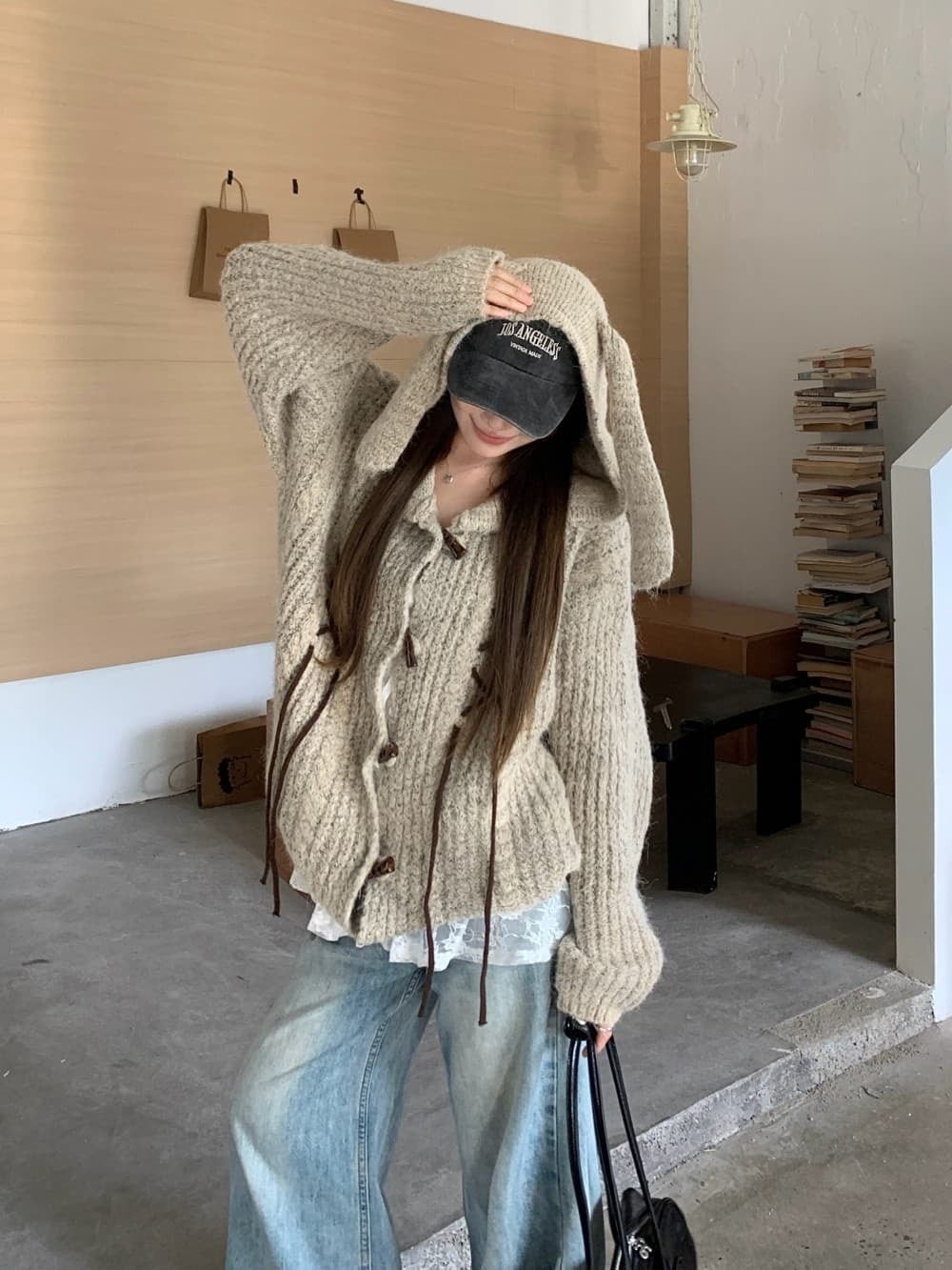 おしゃれで遊び心満載のうさみみニットカーディガン。