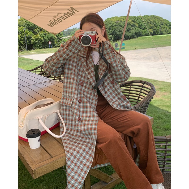 おしゃれで軽やかな秋の必需品、チェック柄ロングコート。