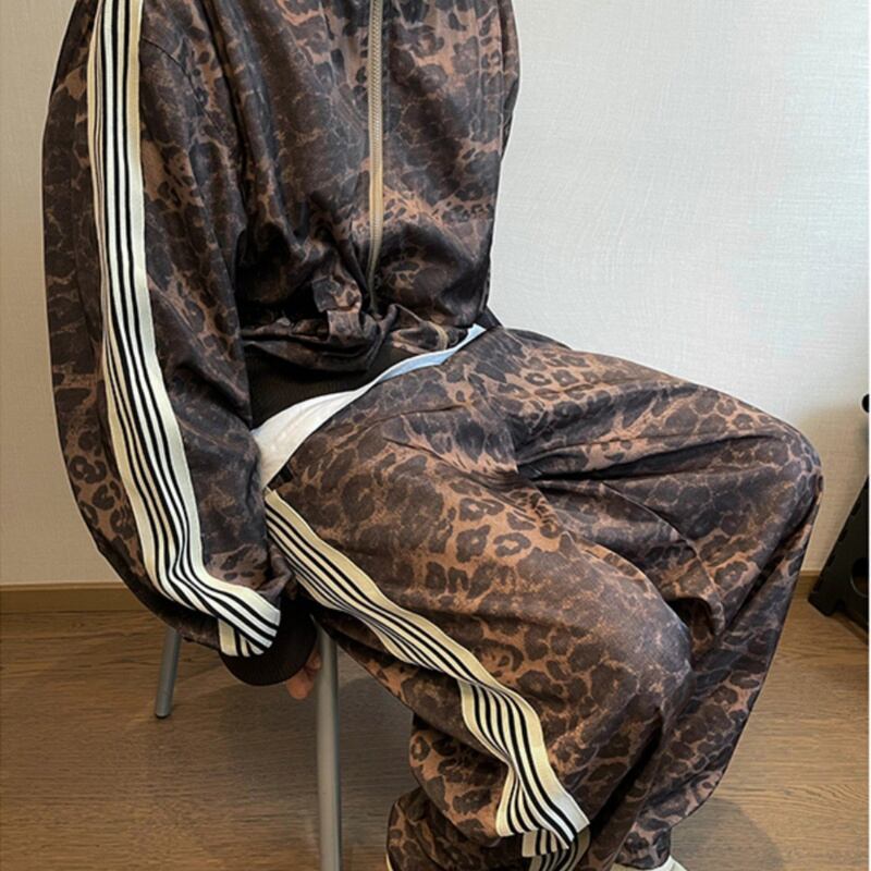 普段使いにぴったりなレオパード柄ジャージセットアップ。