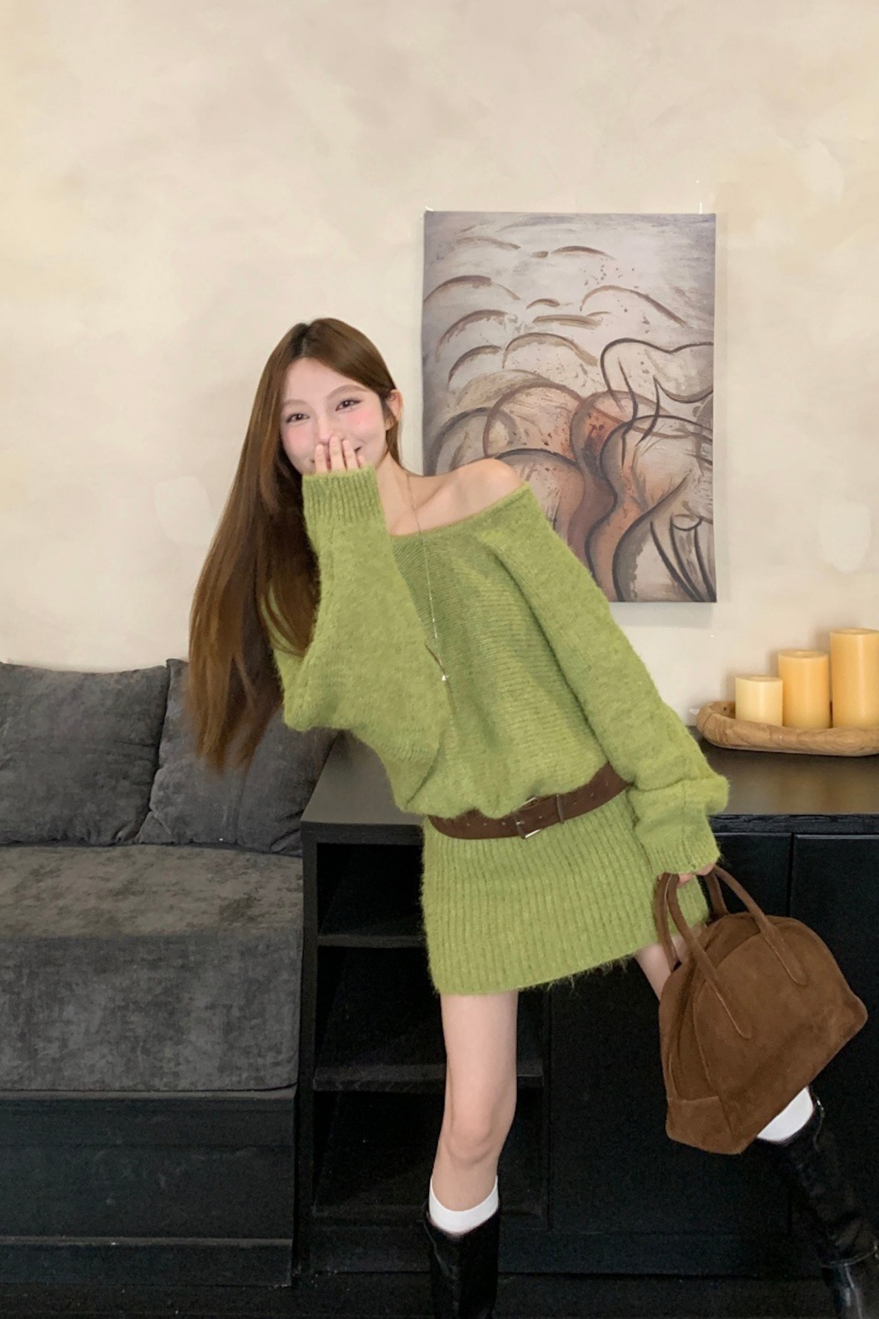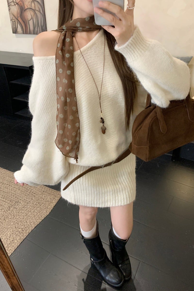 洗練された雰囲気を演出してくれるオフショルニットワンピース。