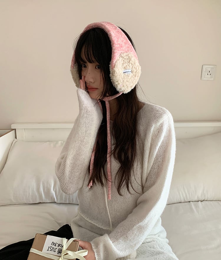 洗練された可愛さを演出するニット&ボアイヤーマフ。