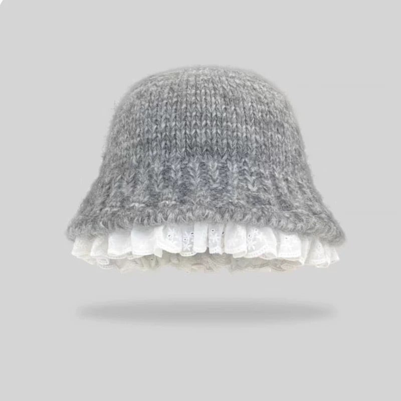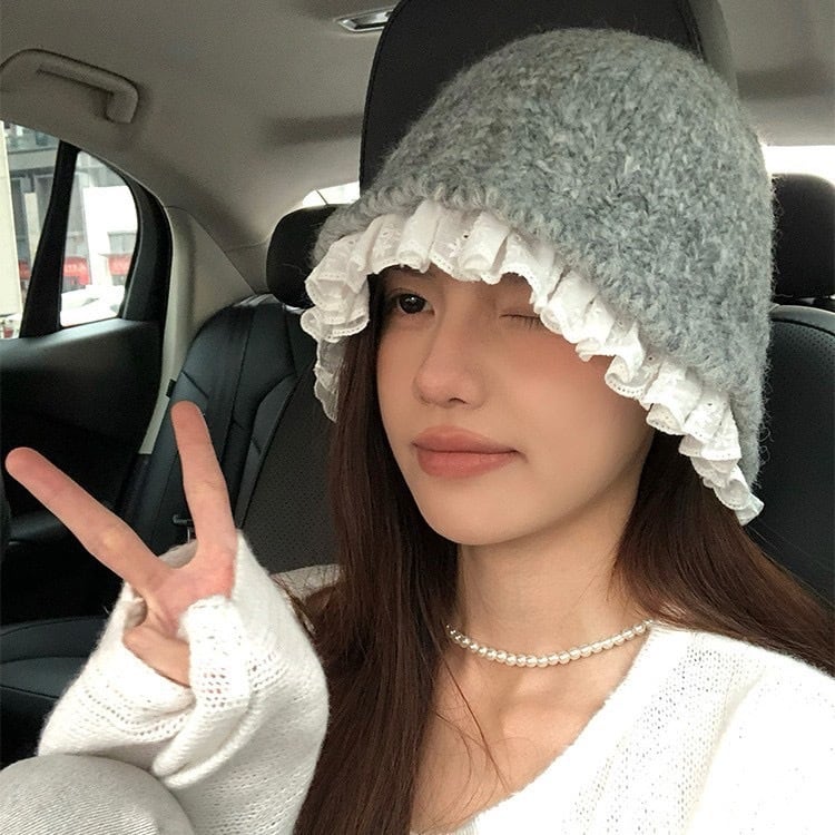 毎日のスタイリングを華やかに彩る、レースレイヤードニット帽。