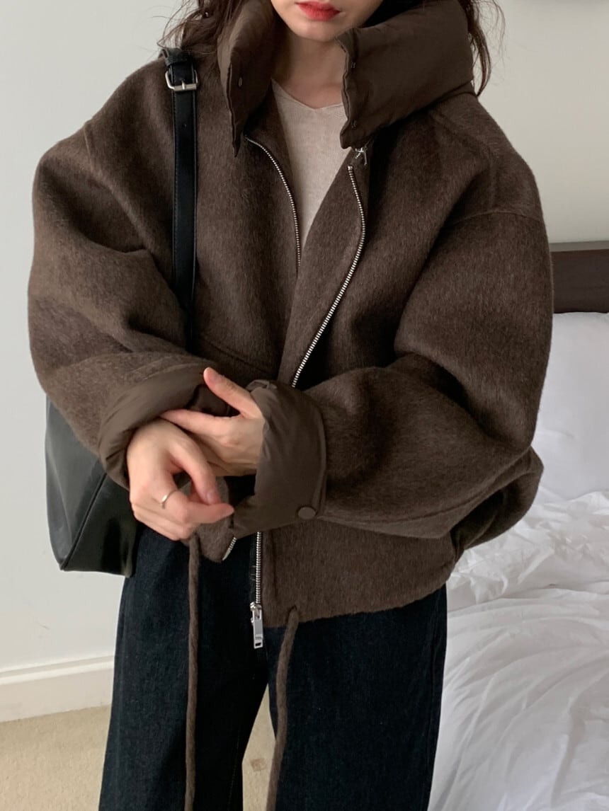 秋冬の寒さ対策もおしゃれに決まるこのアウターは、ダブルジップのデザインが、カジュアルながらも洗練された印象を与えます。