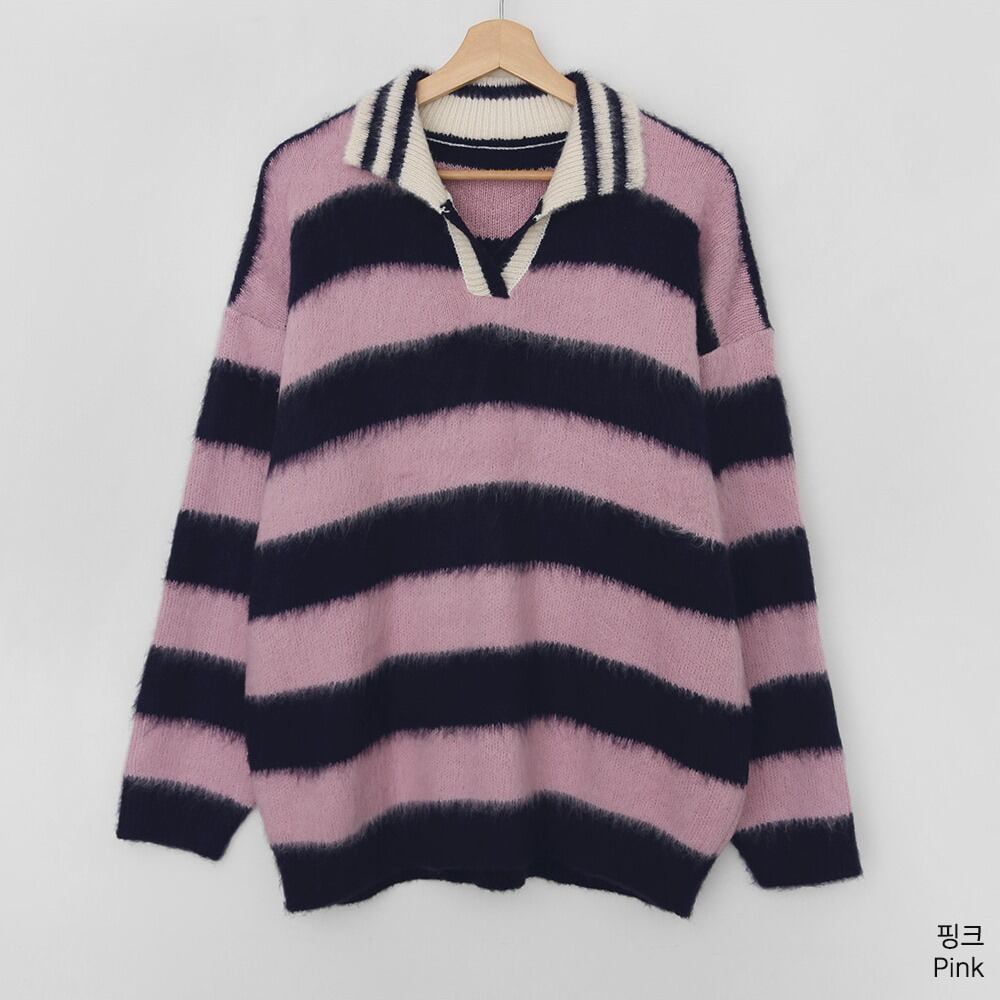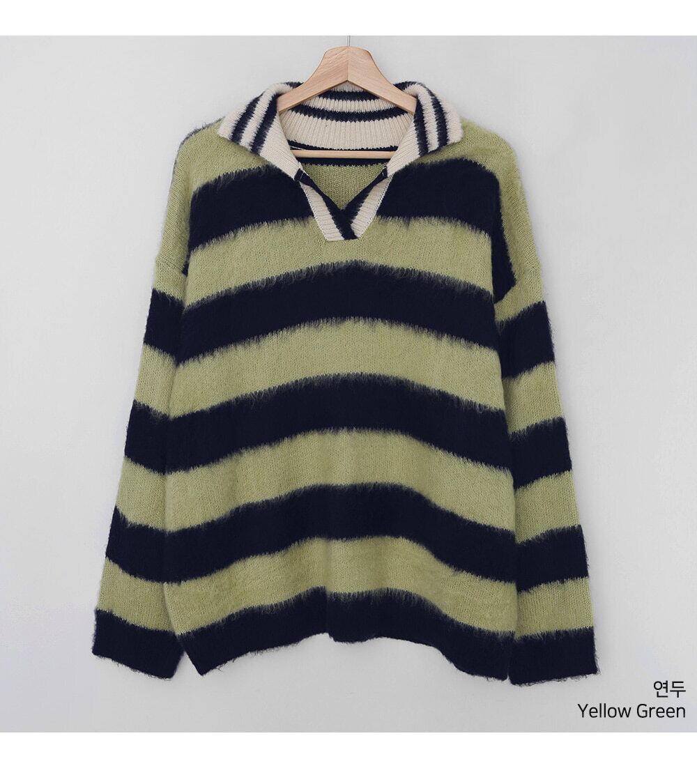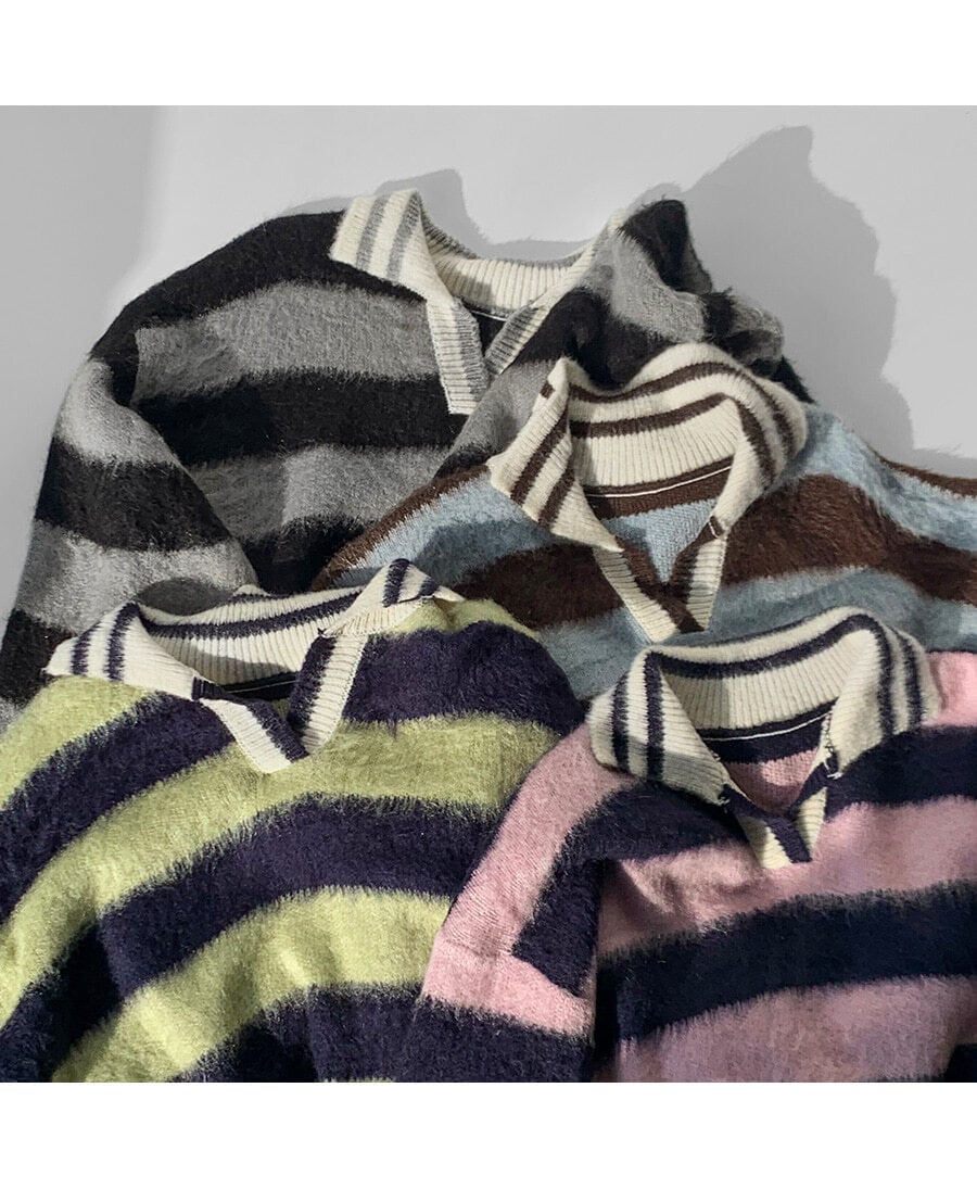 こなれ感とリラックスした雰囲気を演出するポロカラーボーダーニット。