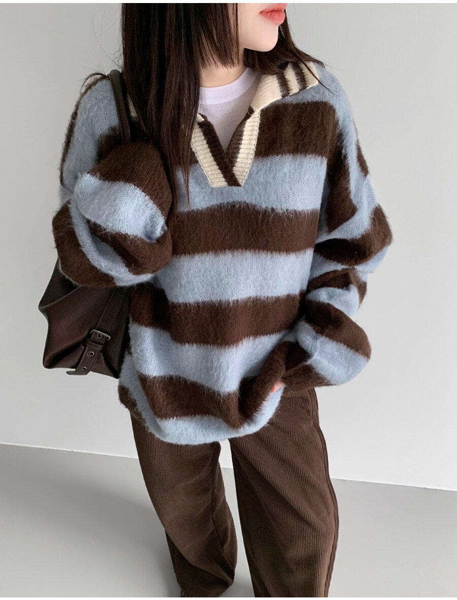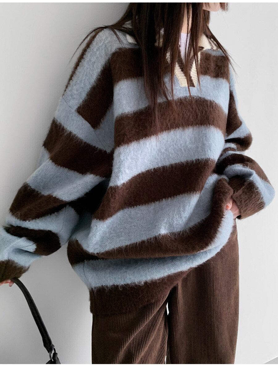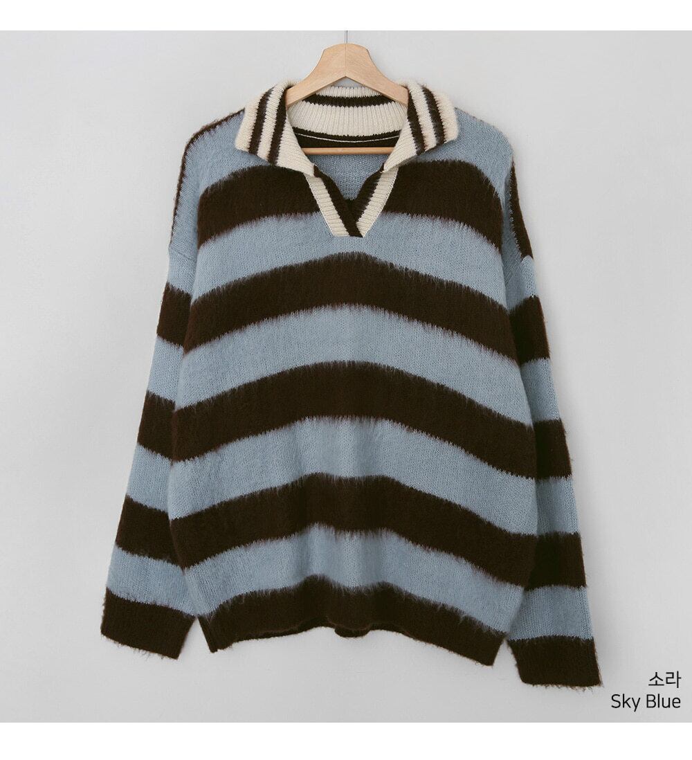 こなれ感とリラックスした雰囲気を演出するポロカラーボーダーニット。