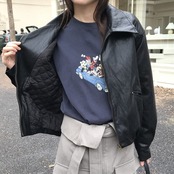 【アウター】中綿フェイクレザーブルゾン