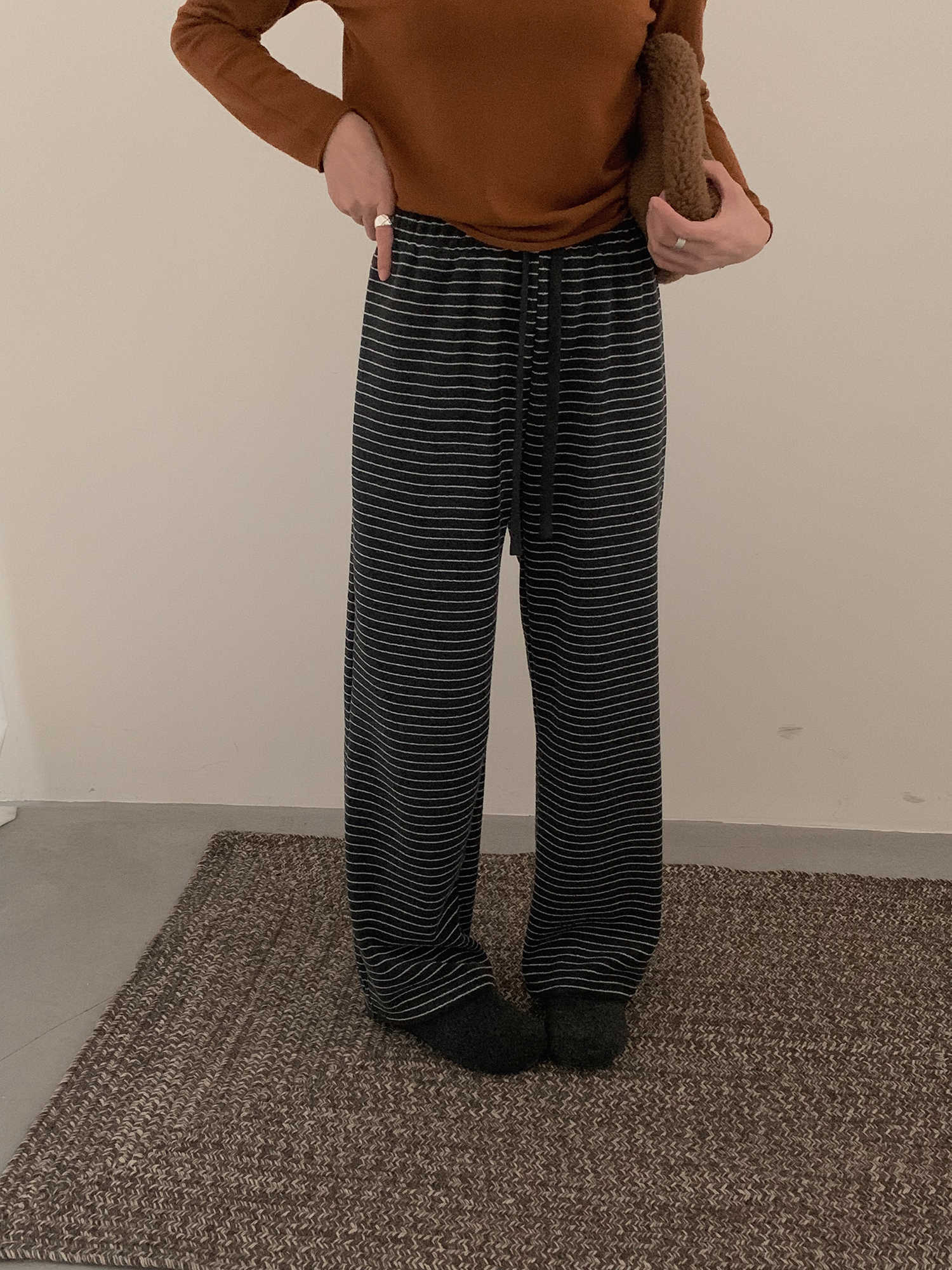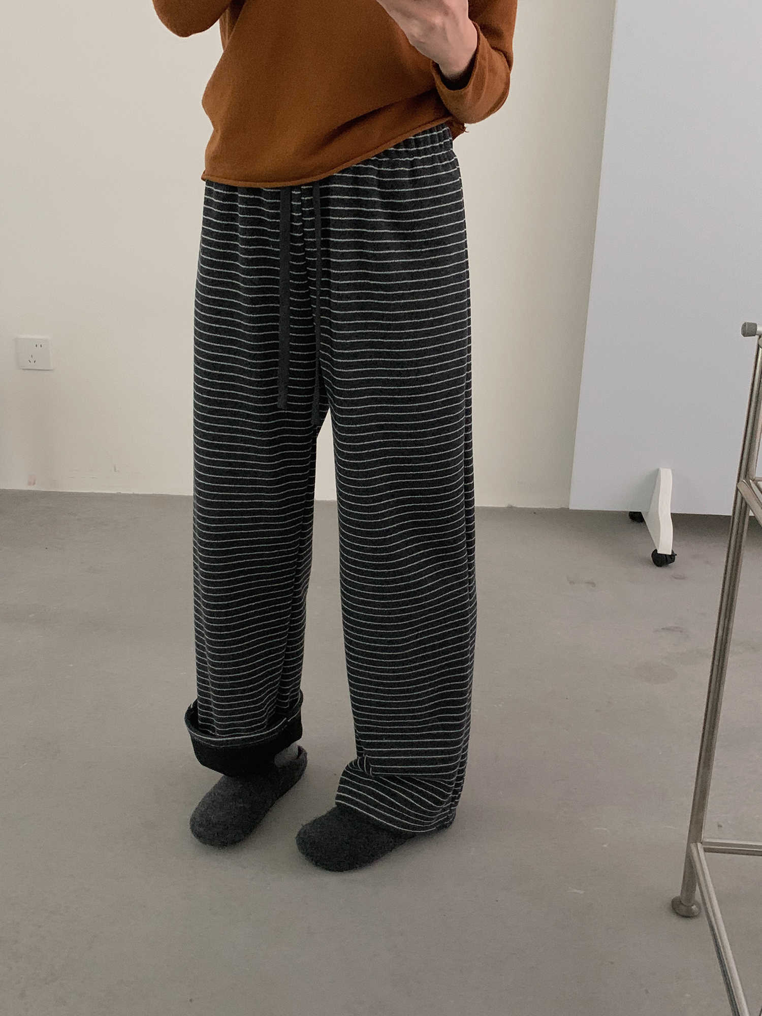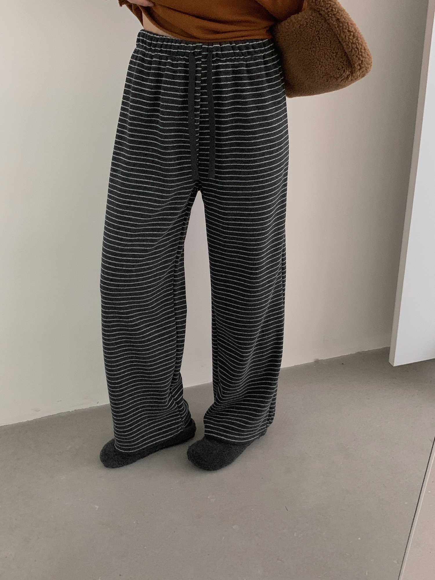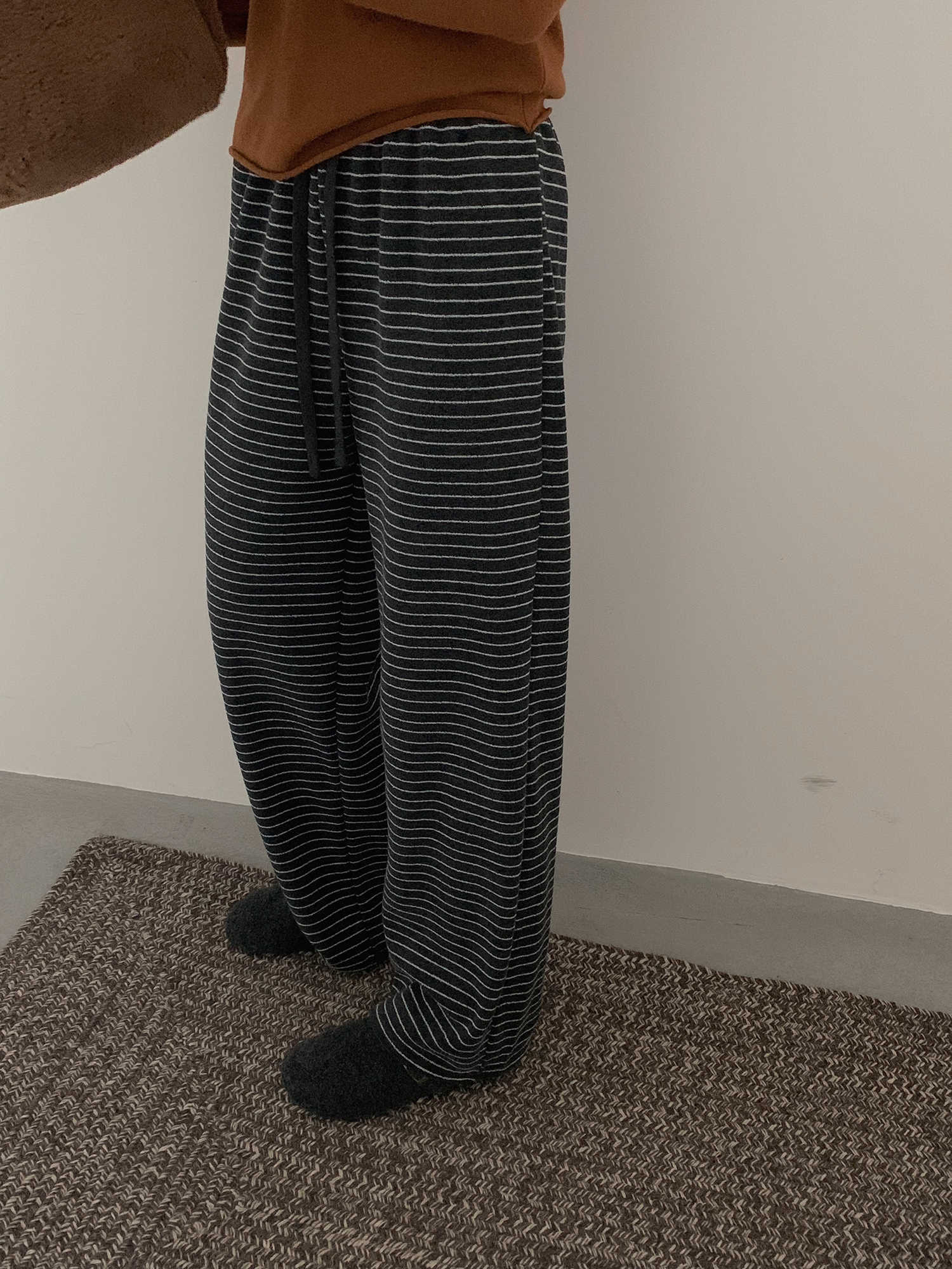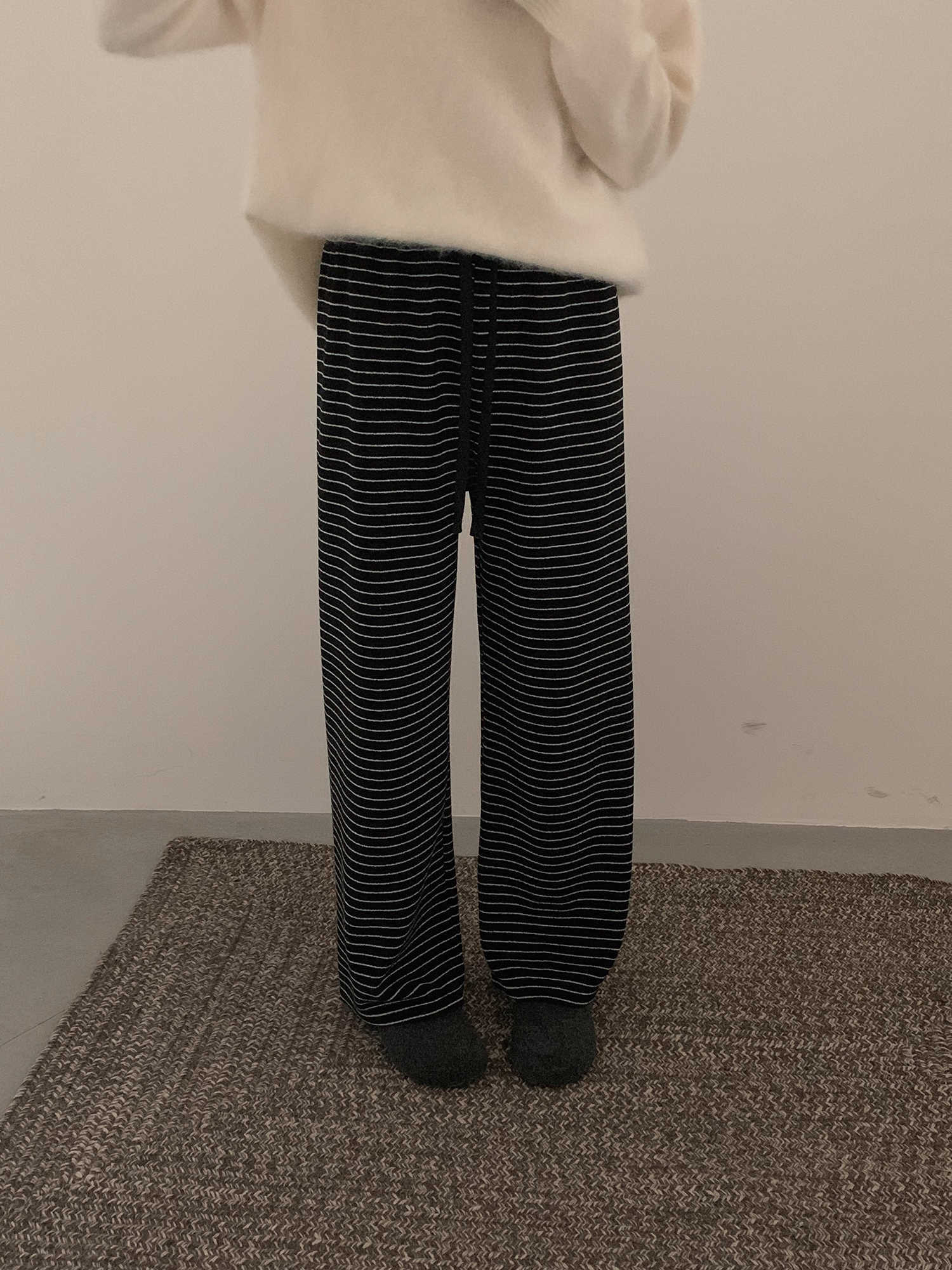 おしゃれでリラックスした着こなしを楽しめるボーダーストレートパンツ。