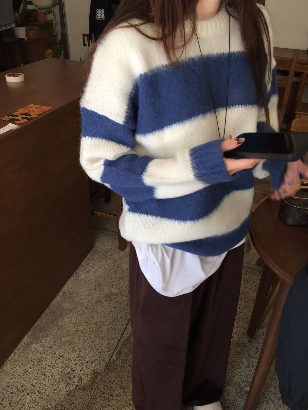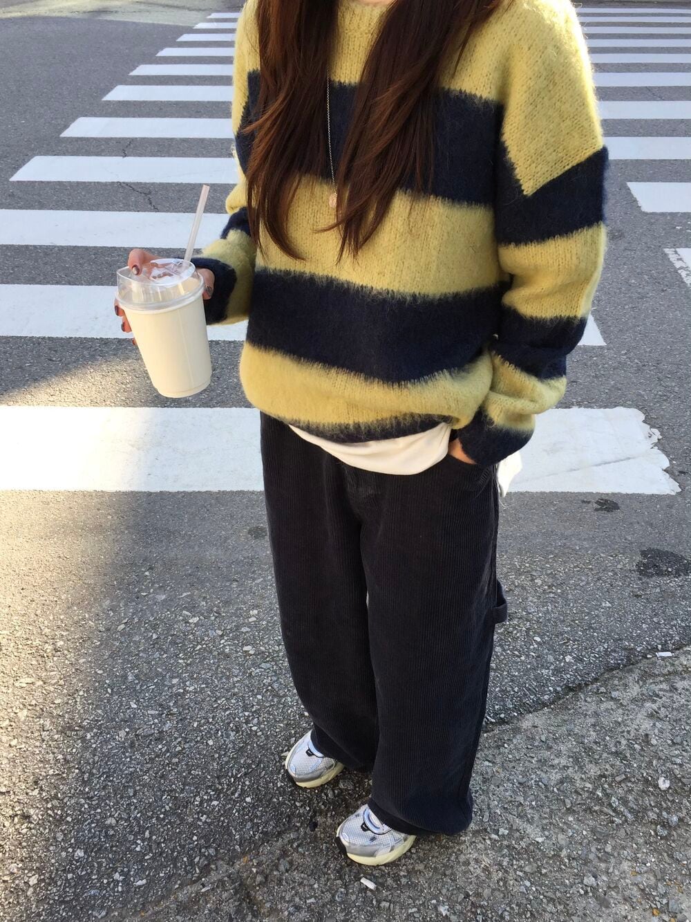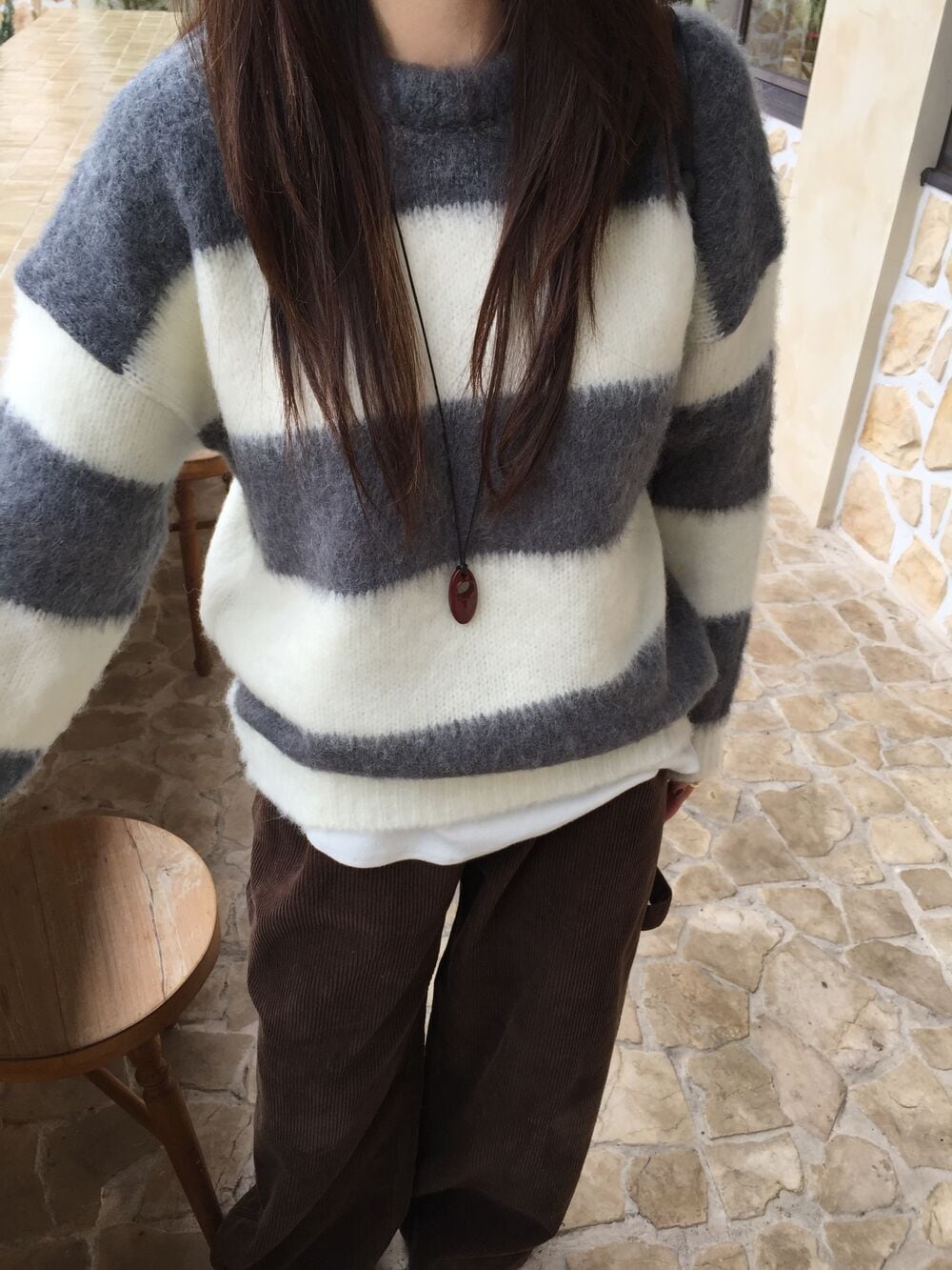 太めのボーダーが今っぽい印象を与えます。