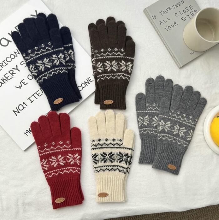 ノルディック柄が施された手袋は、冬のコーディネートに華やかさを添え、スタイリッシュな印象を与えるアイテムです。