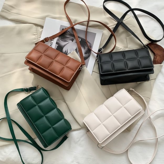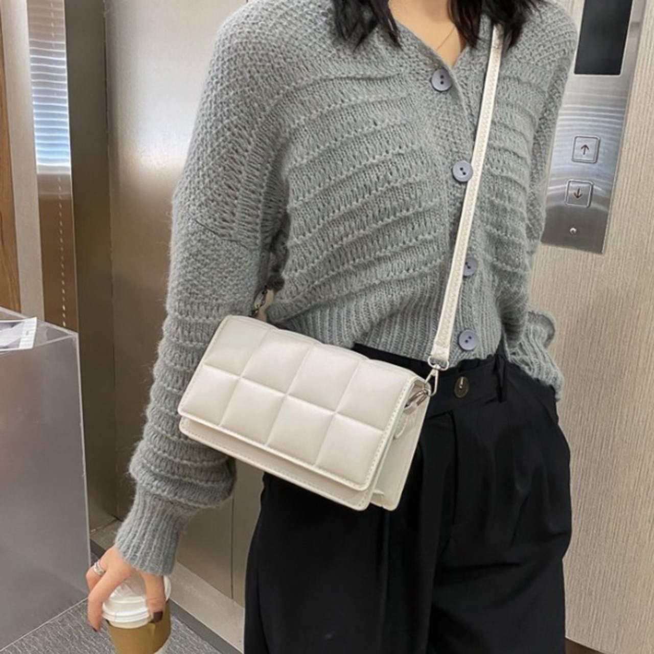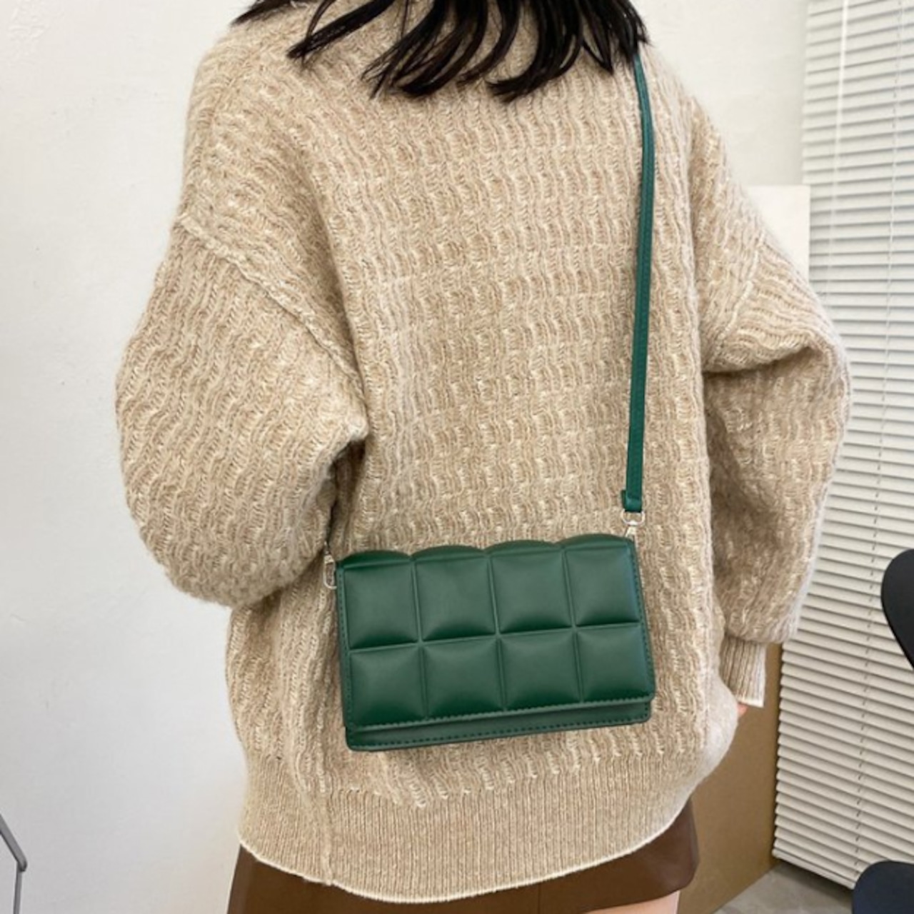 おしゃれで洗練されたデザインのスクエアショルダーバッグ。