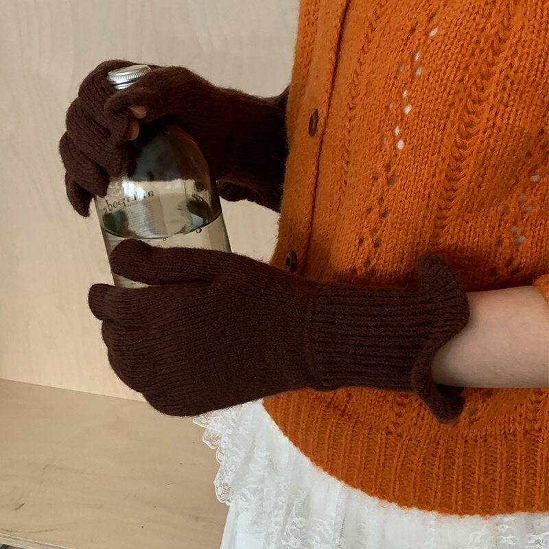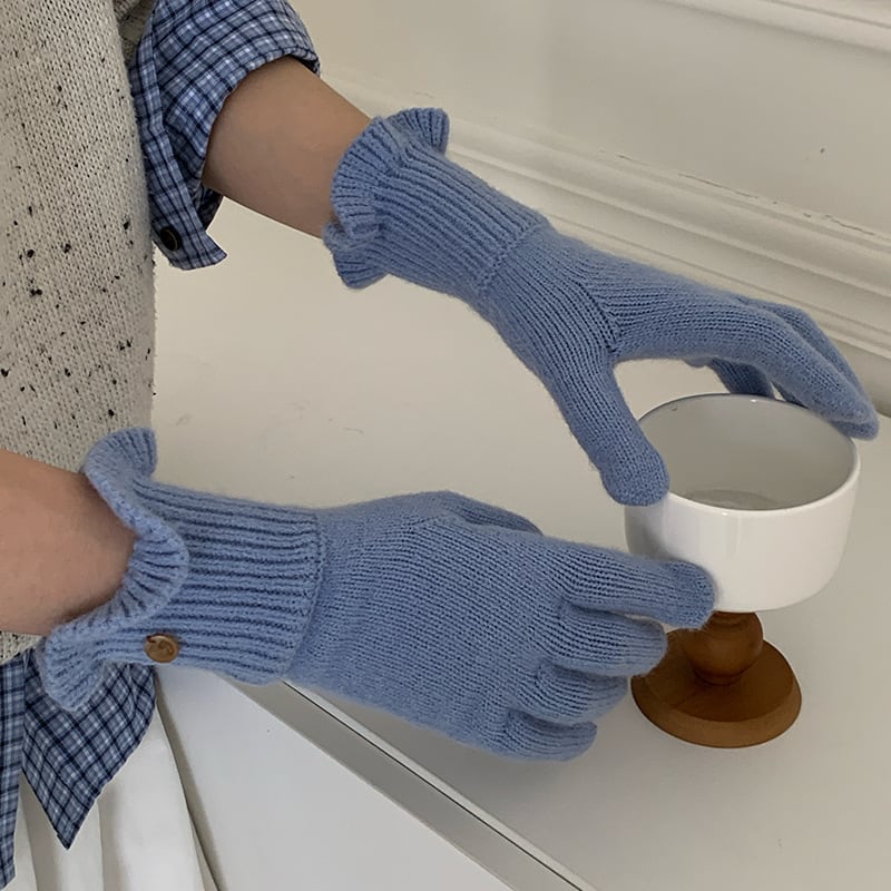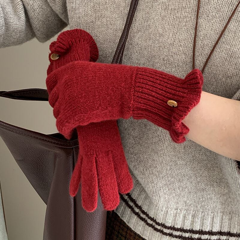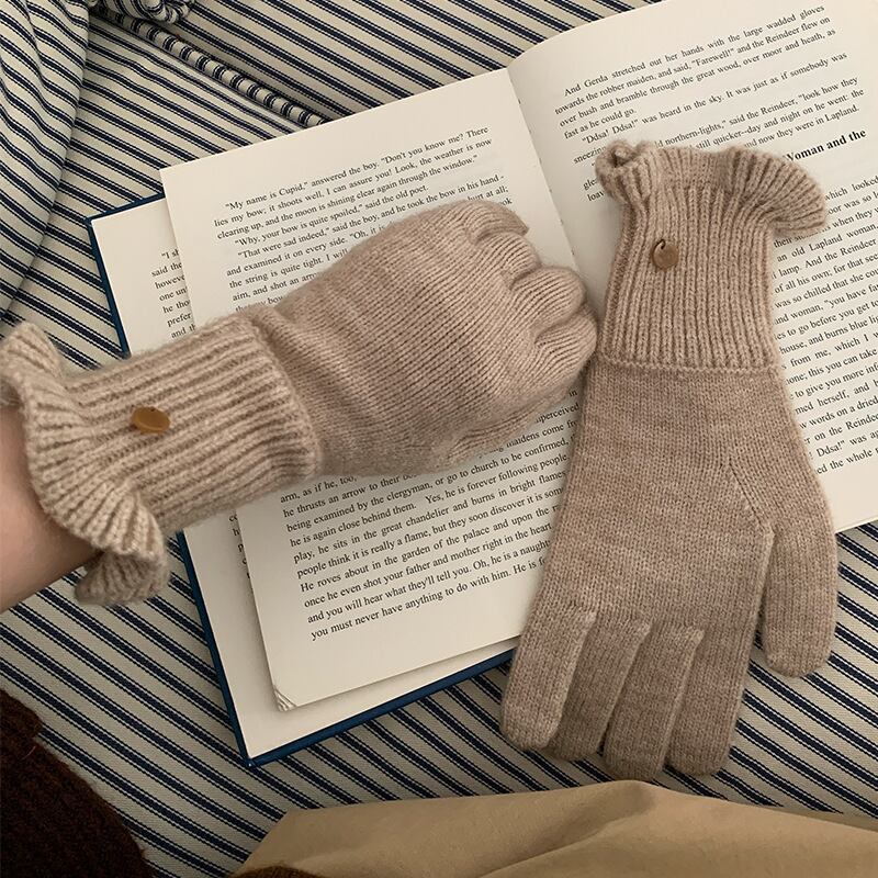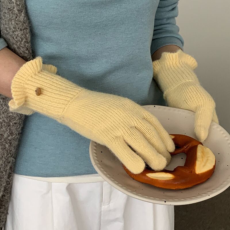 おしゃれで可愛らしい印象を与えるフリルニット手袋。