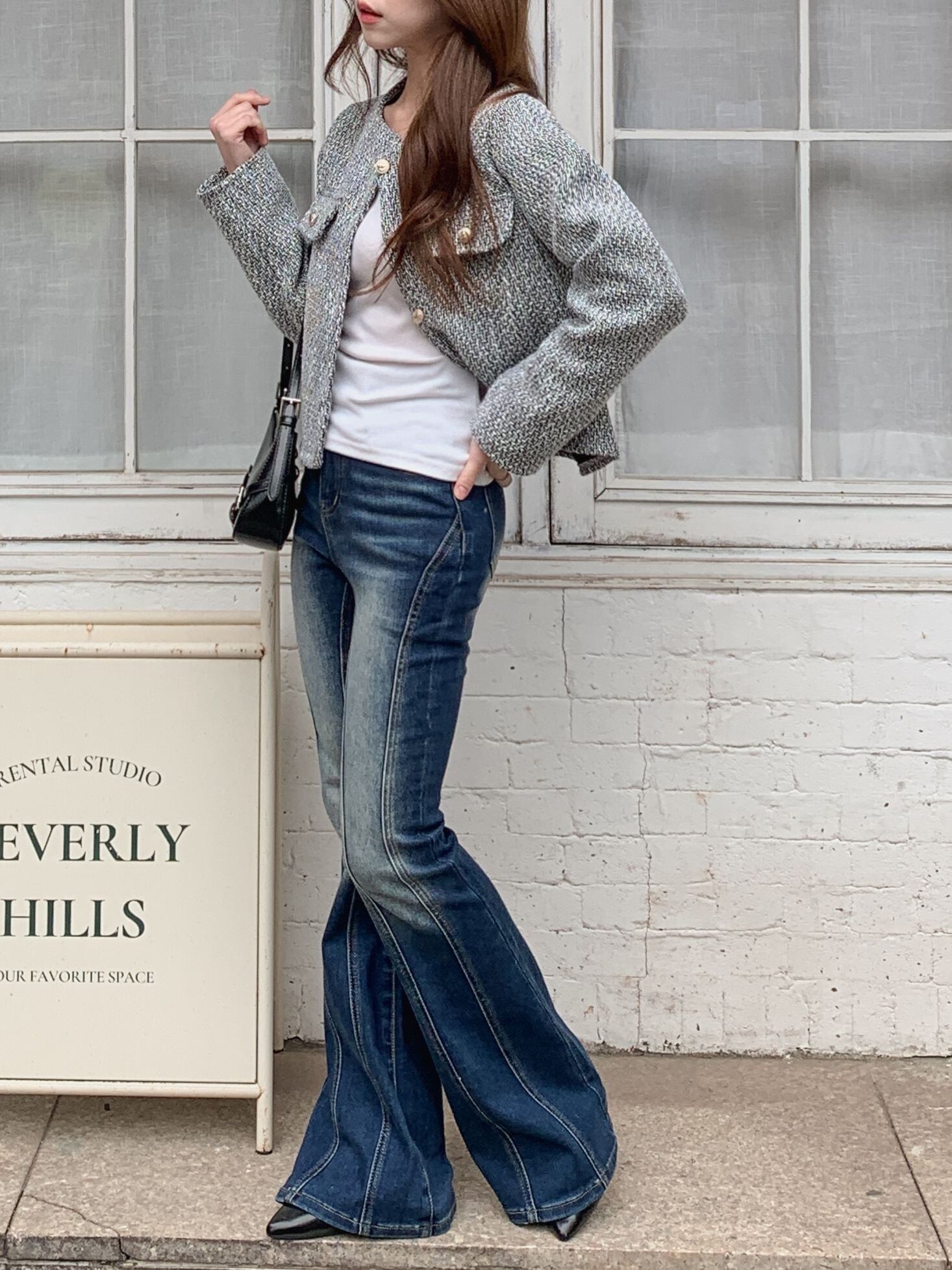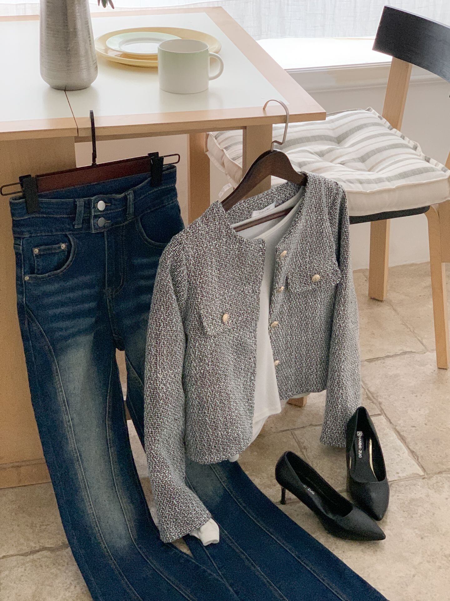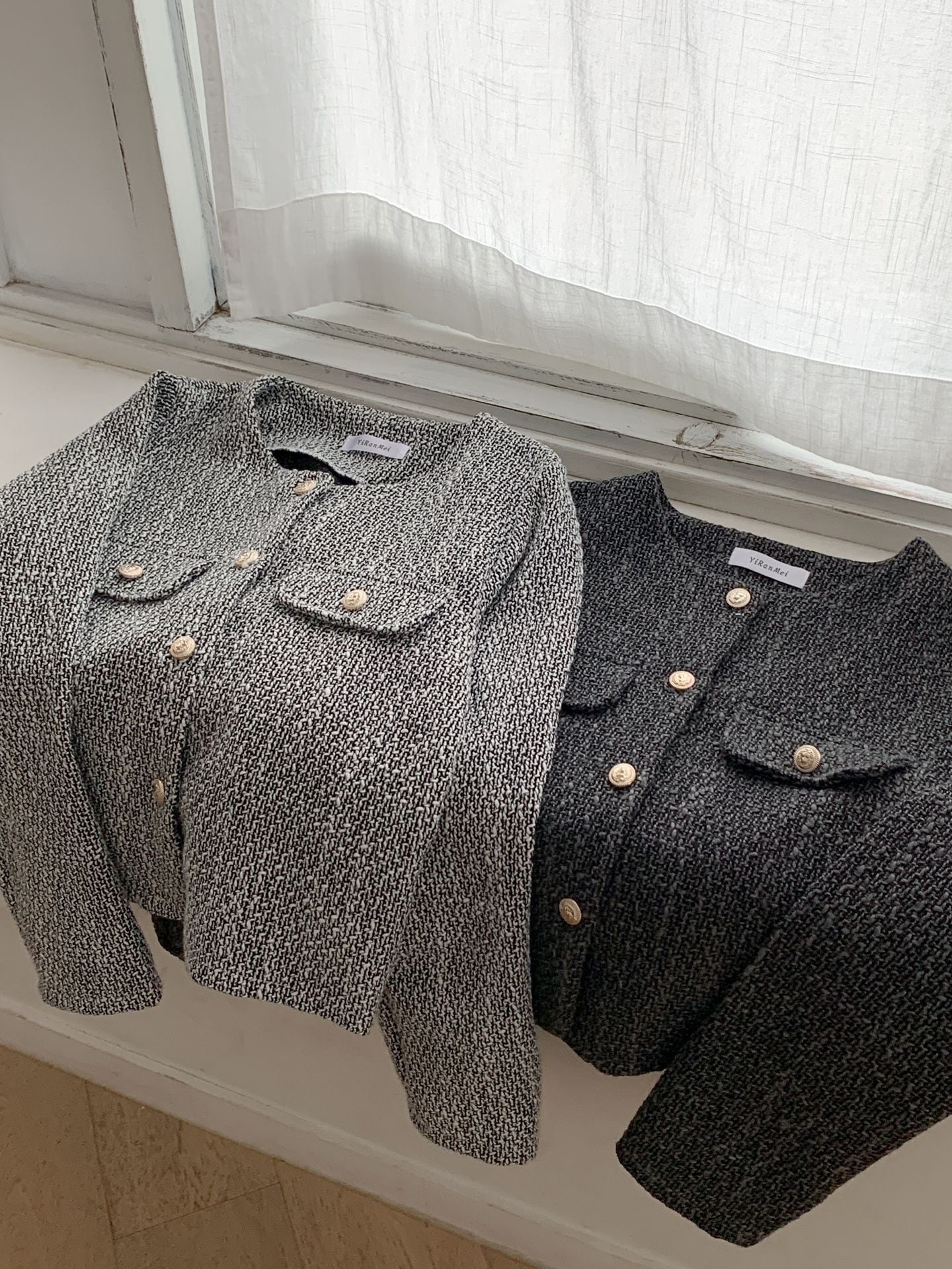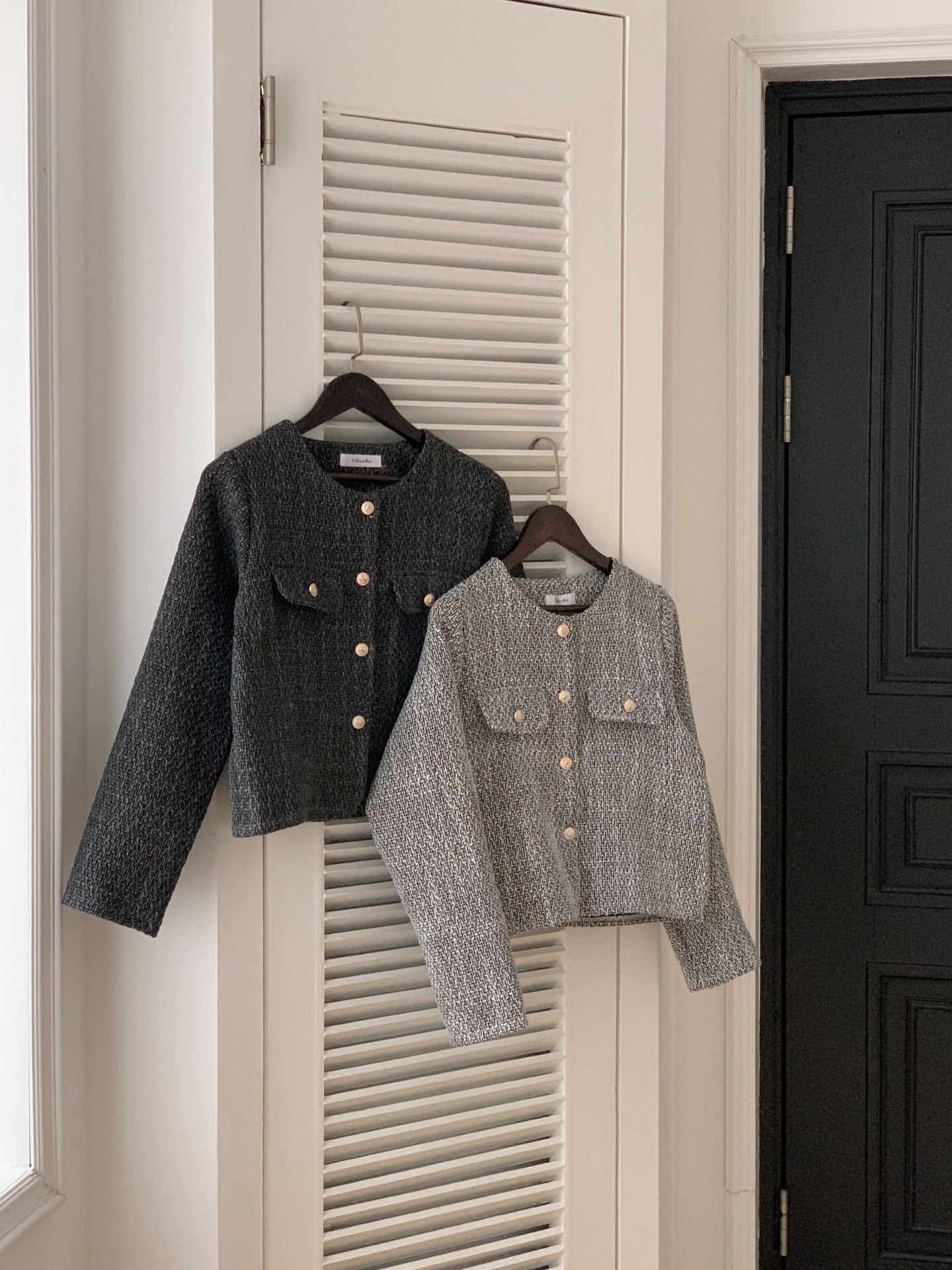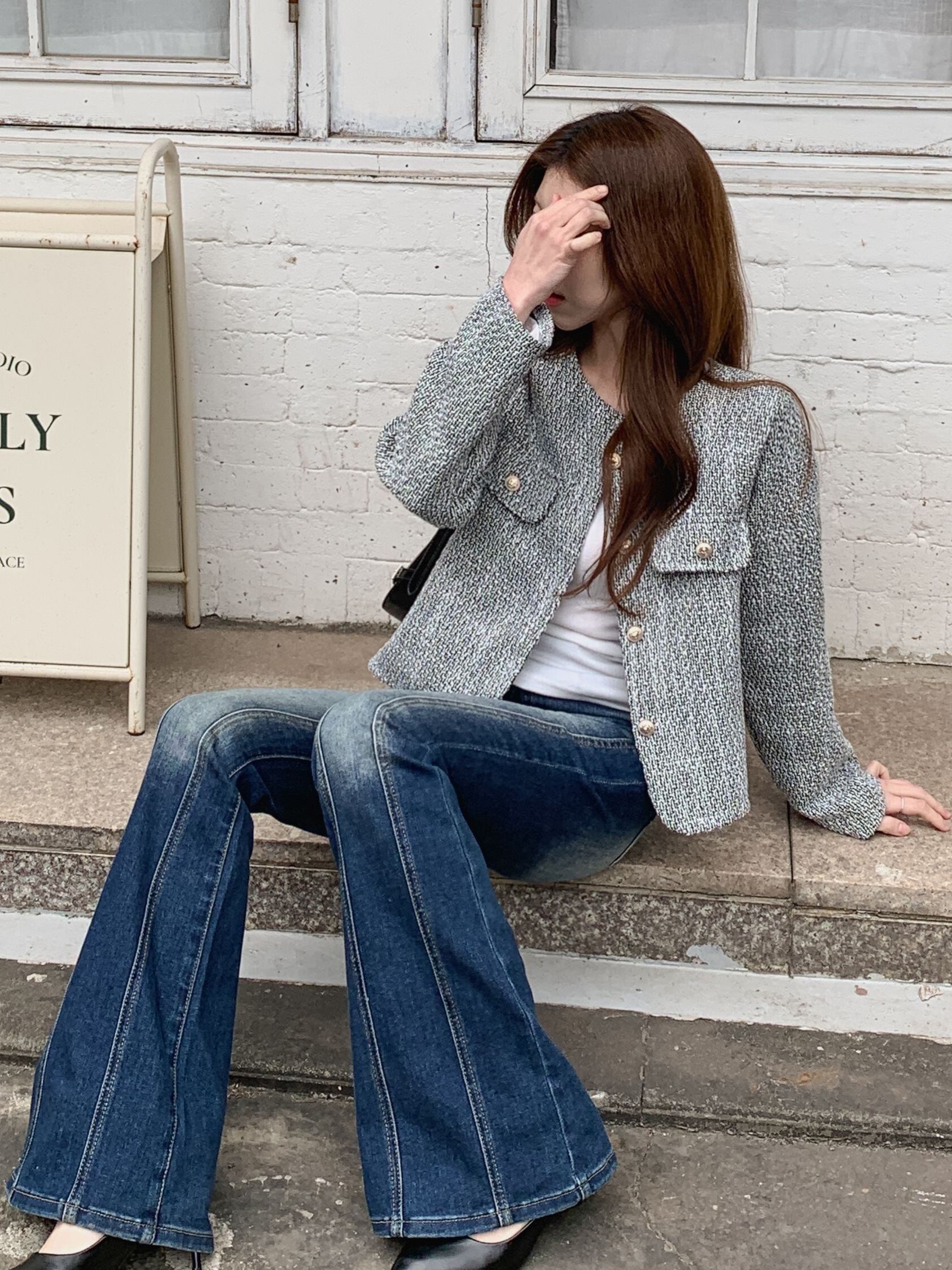 柔らかなツイード生地が、高級感と着心地の良さを兼ね備え、多様なスタイルにフィットするデザインです。