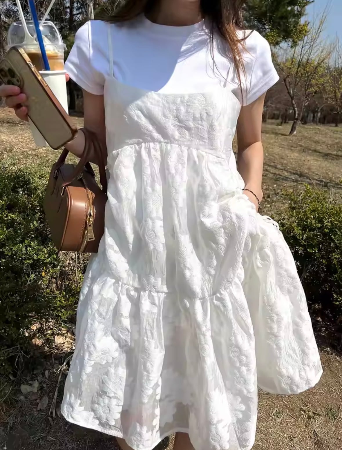 軽やかなレイヤードスタイルを楽しめるこのワンピースは、カジュアルなお出かけからリラックスタイムまで幅広く活躍します。