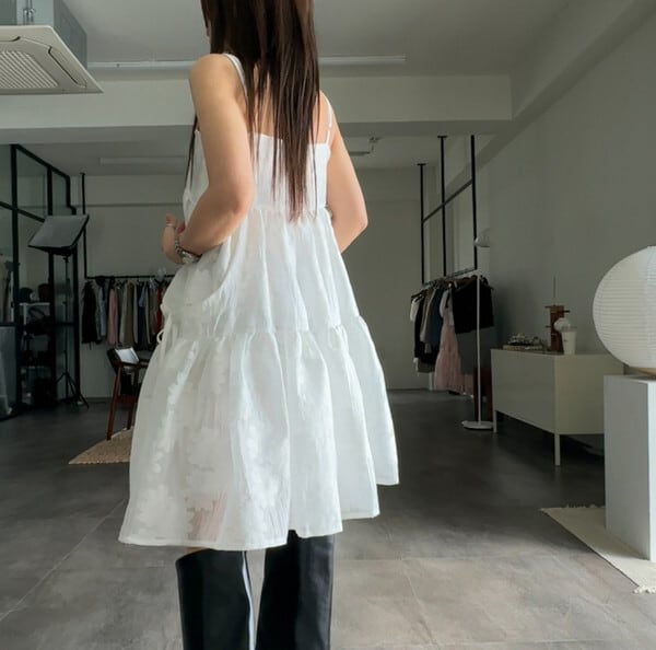 シンプルでありながら洗練された印象を与えるポケット付きキャミワンピース。