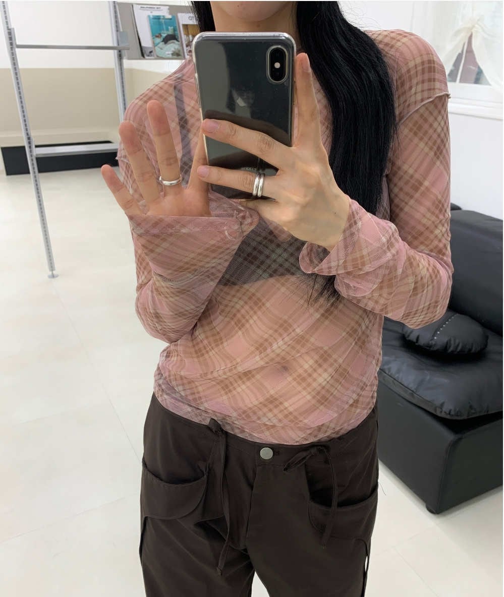 季節の変わり目に重宝するチェック柄シアートップスです。