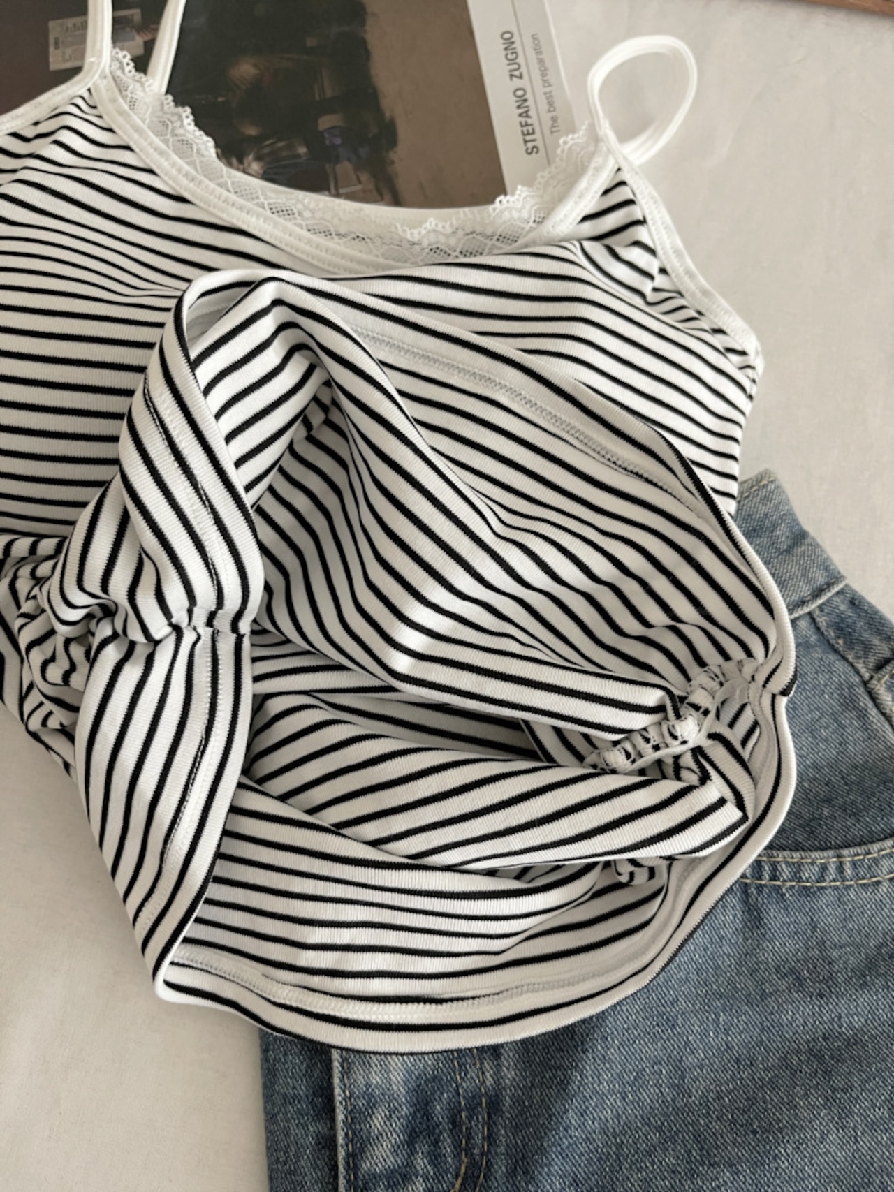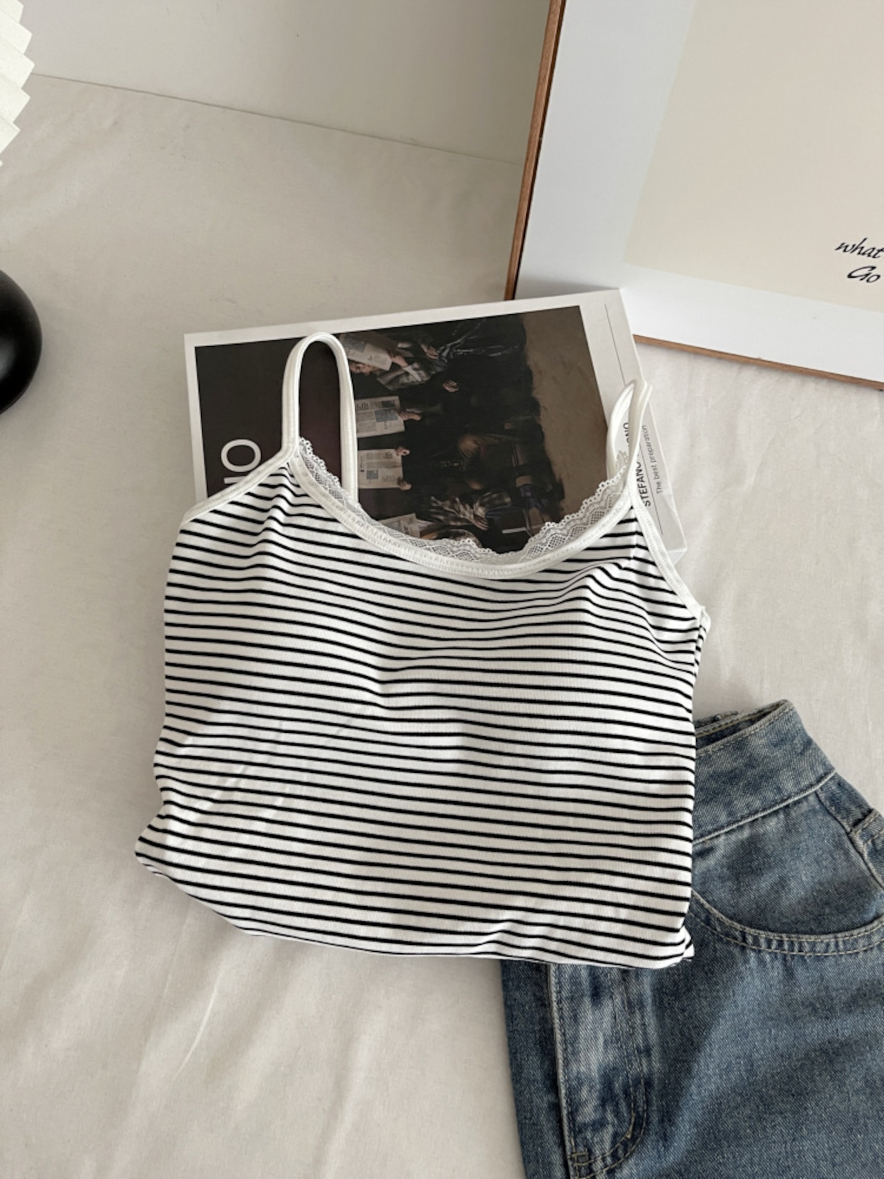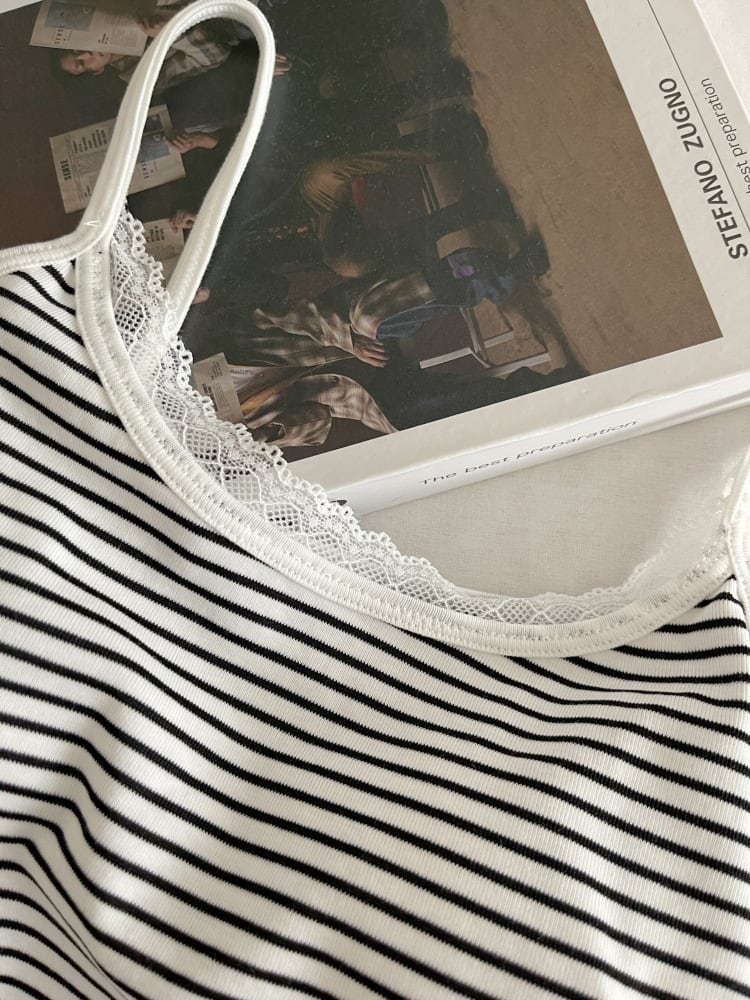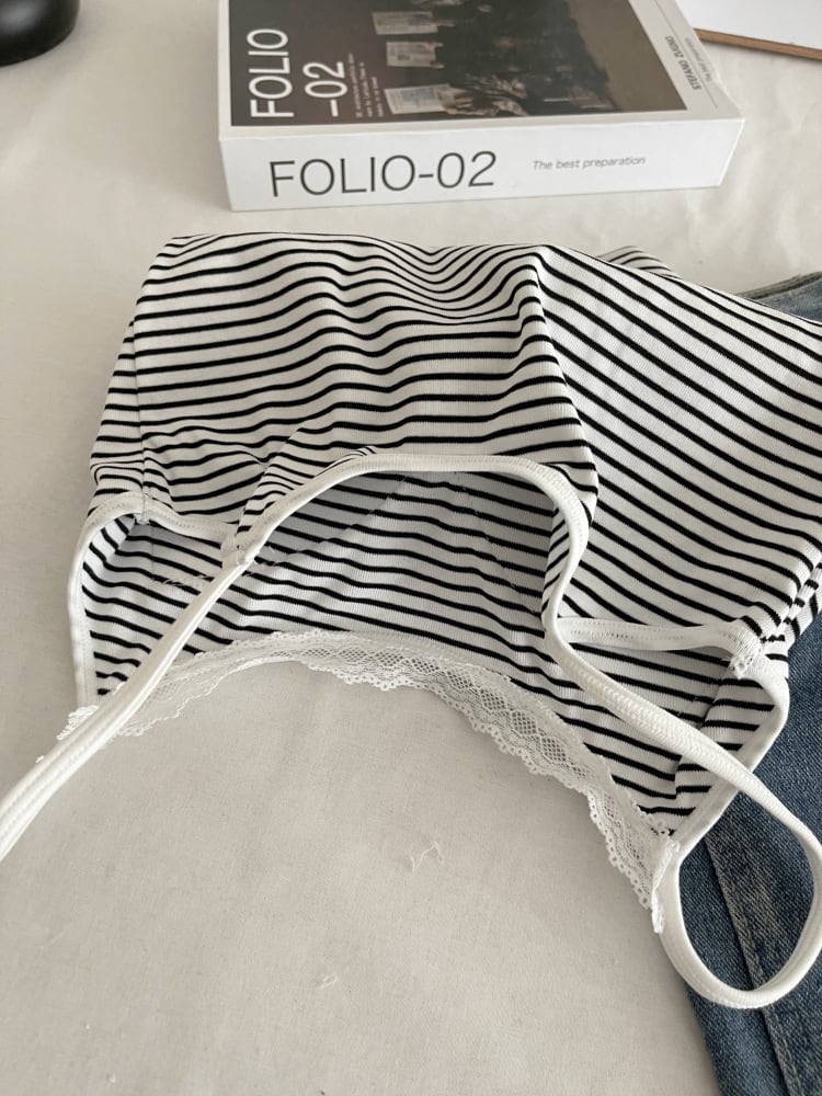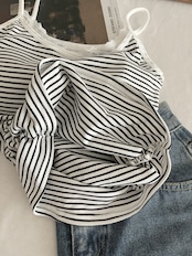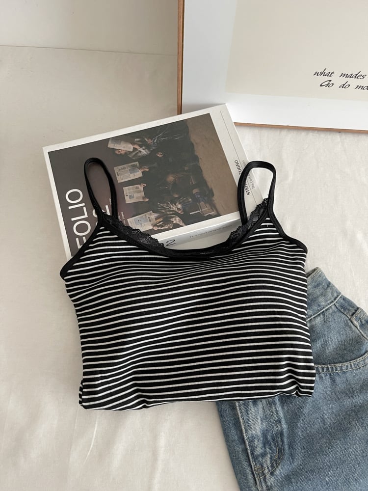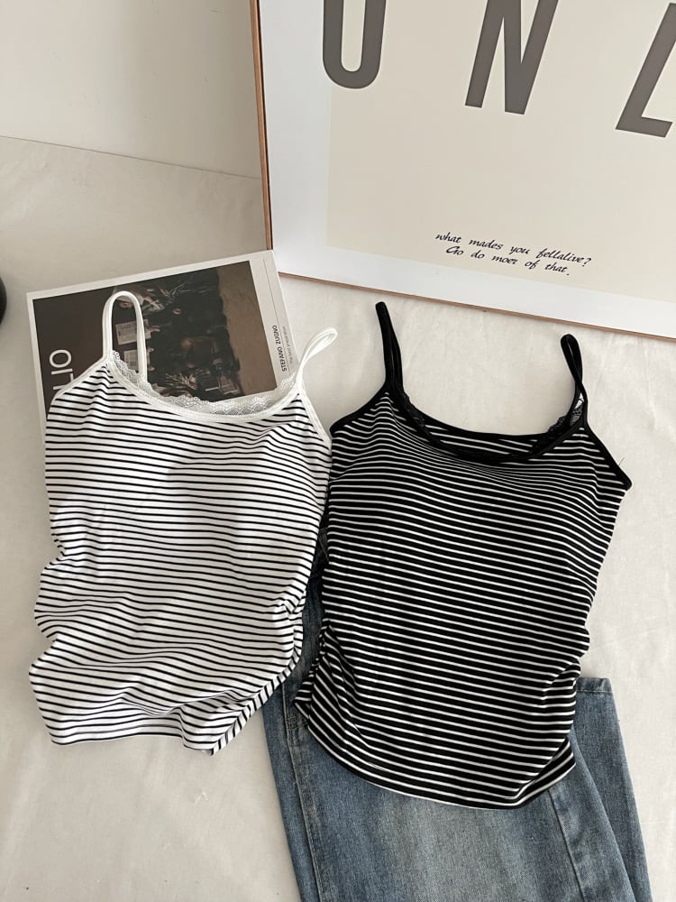 季節を問わず活躍するカップ付きボーダーキャミソール。