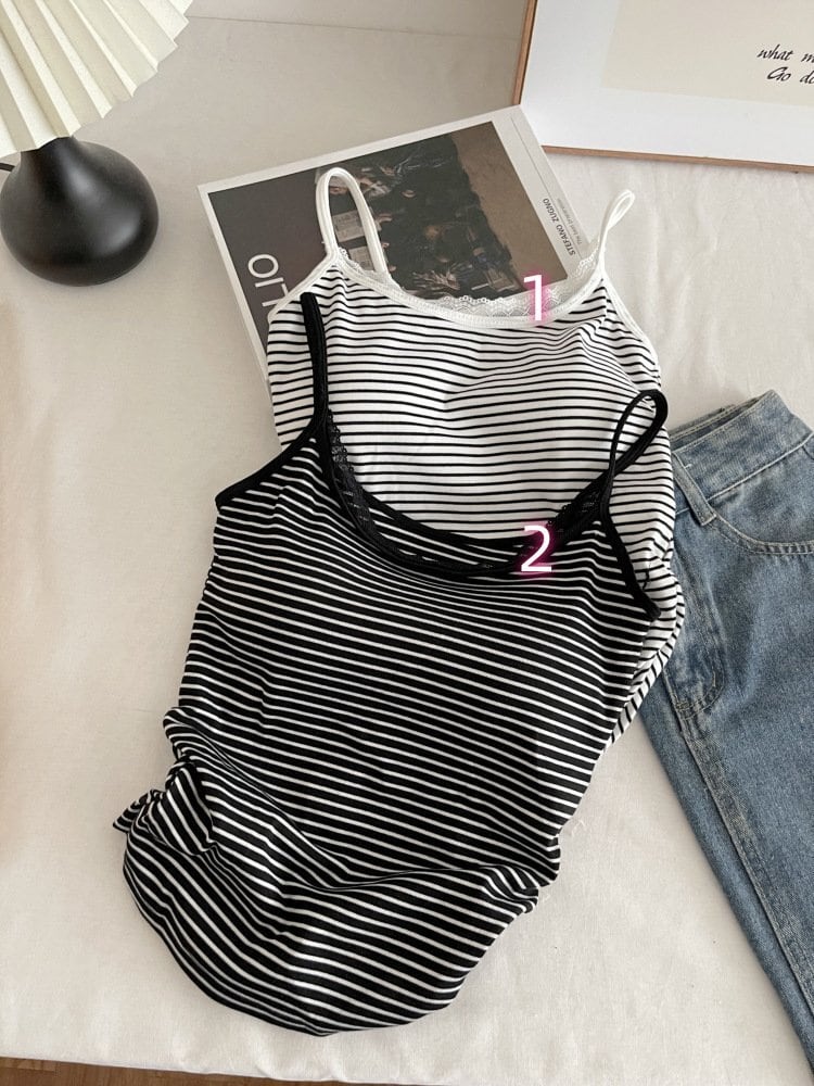 【トップス】カップ付きボーダーキャミソール