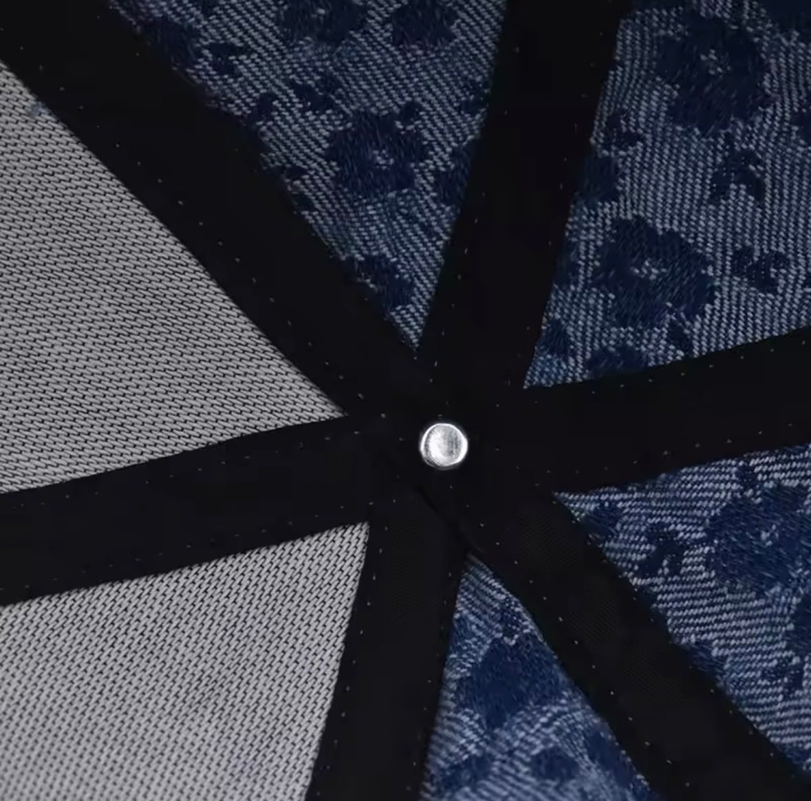 デニム素材のモノグラムデザインが、シンプルながらも個性を引き立てます。