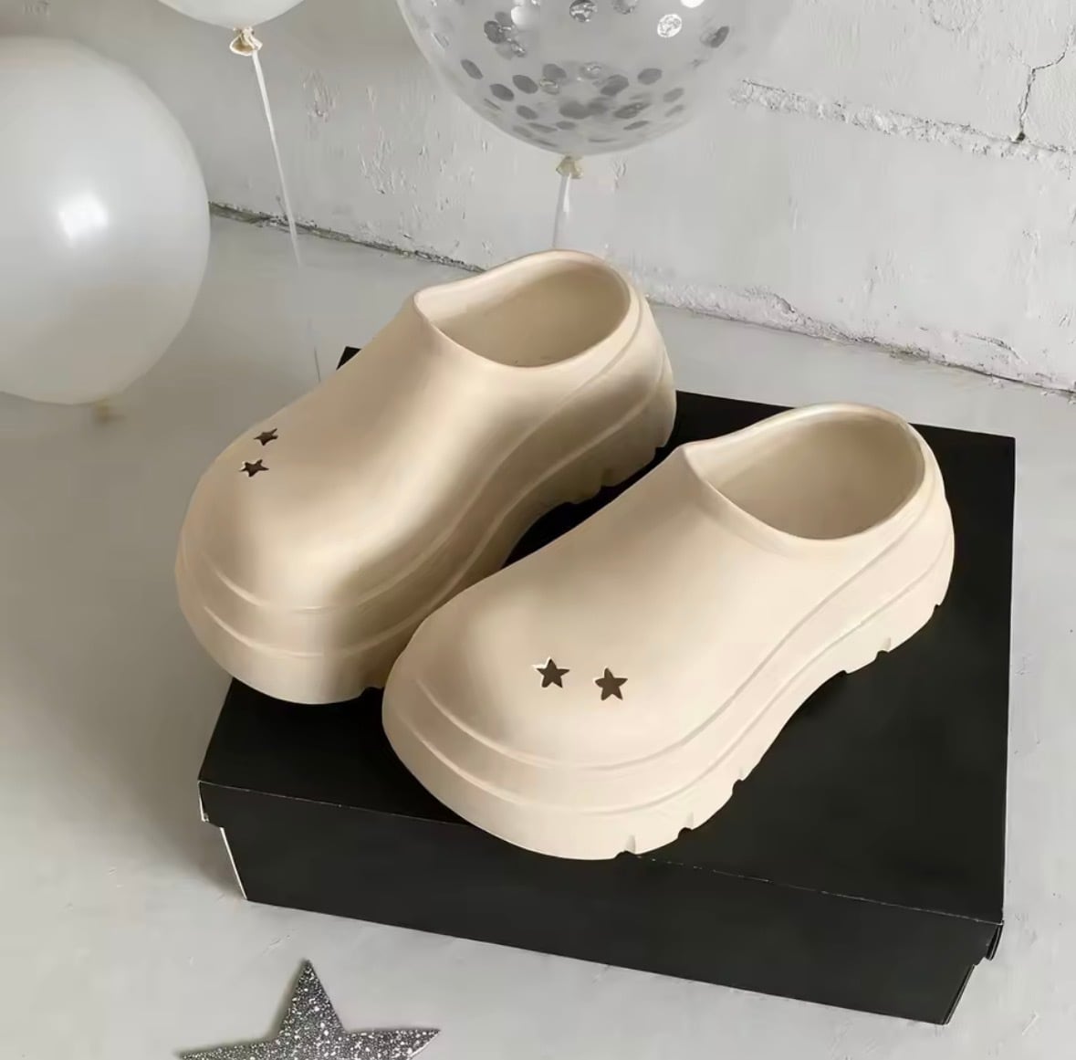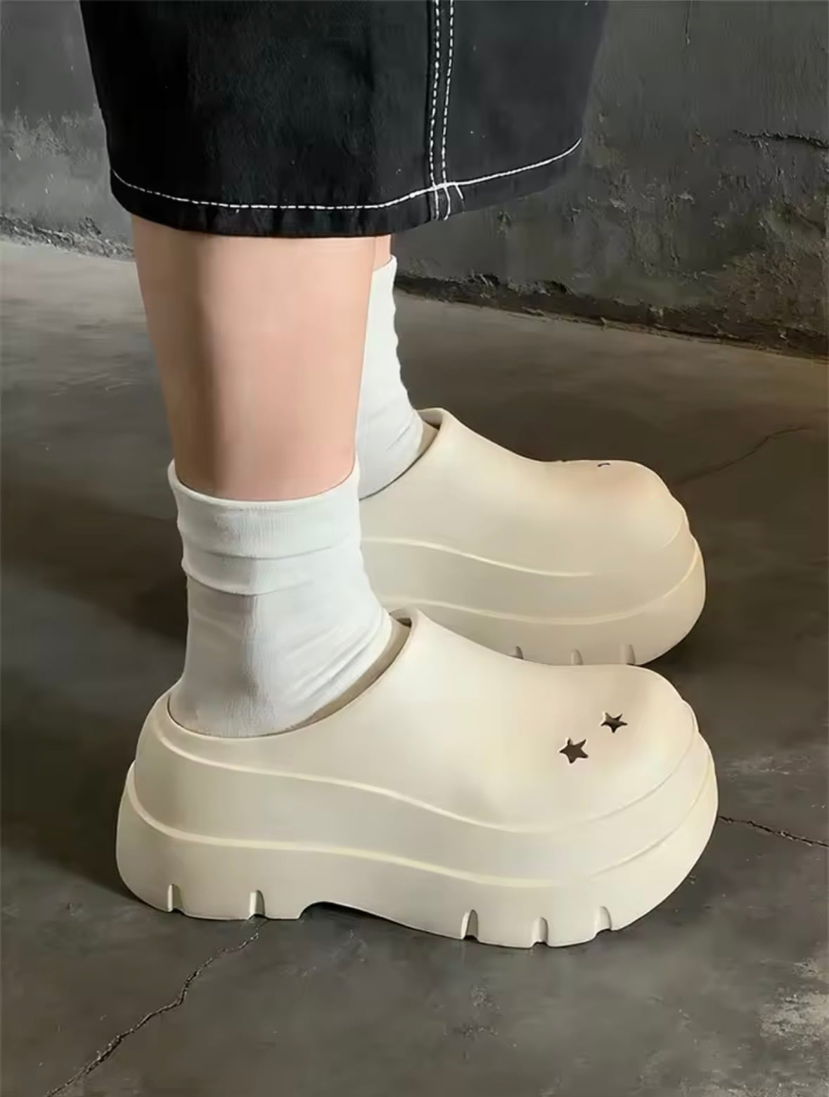 厚底でスタイルアップが叶うおしゃれな厚底スタークロッグサンダル。