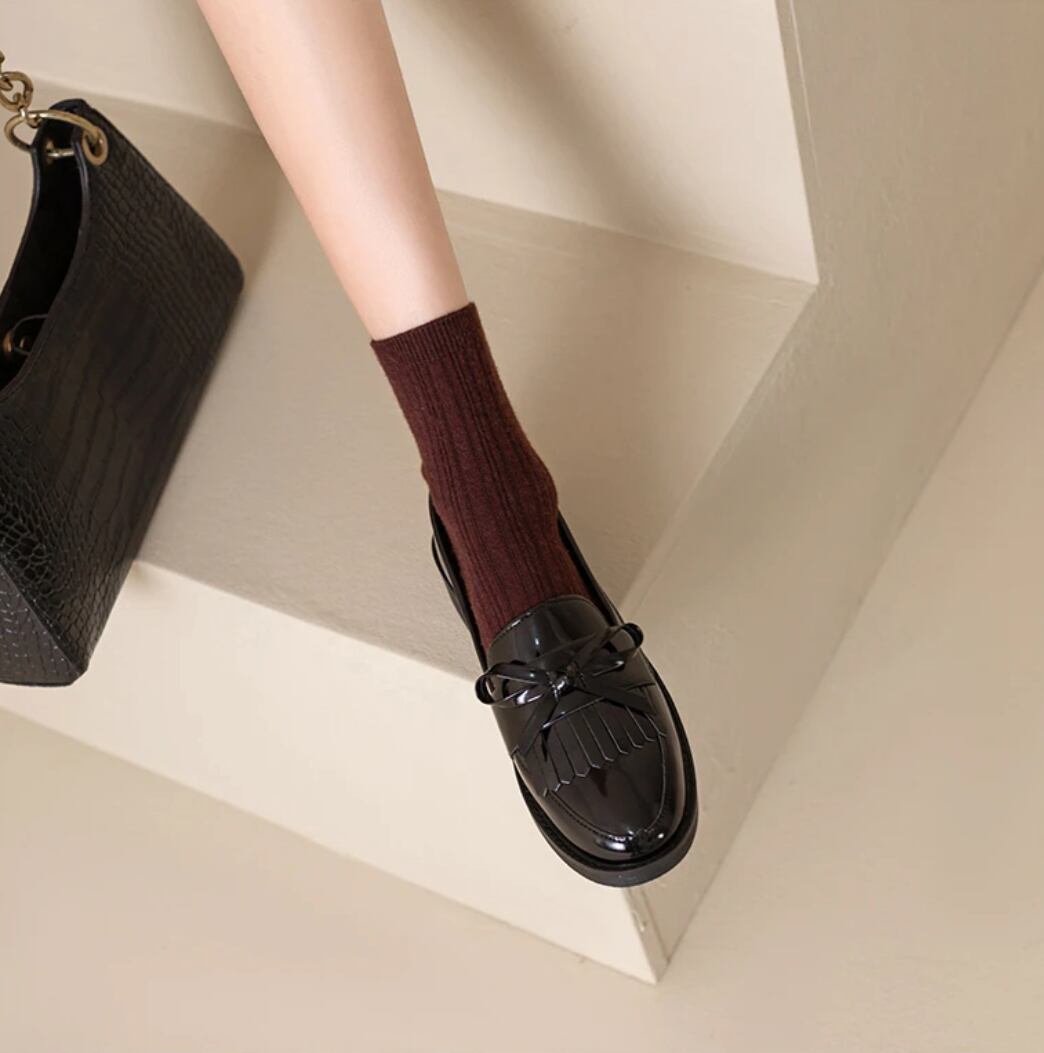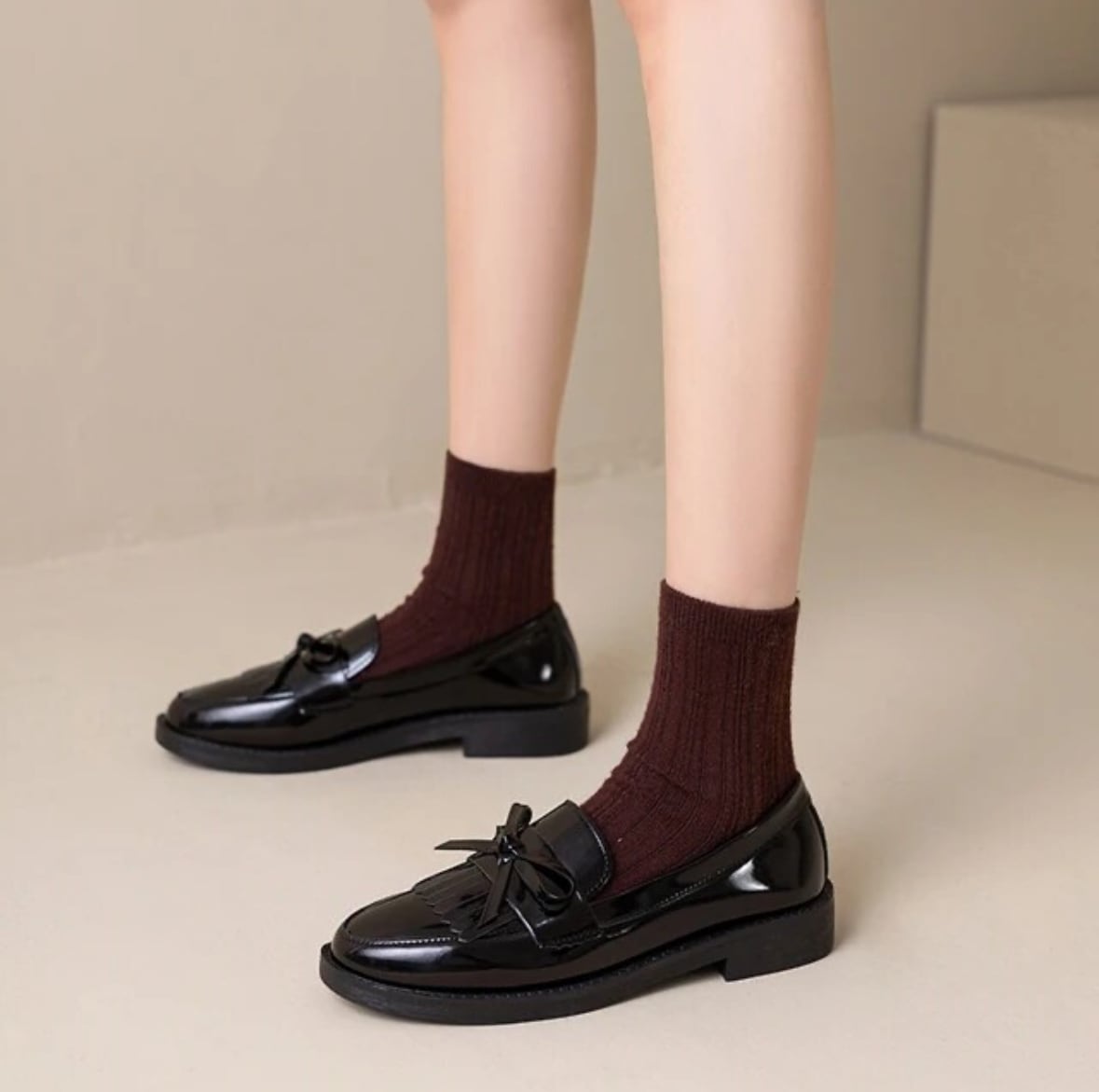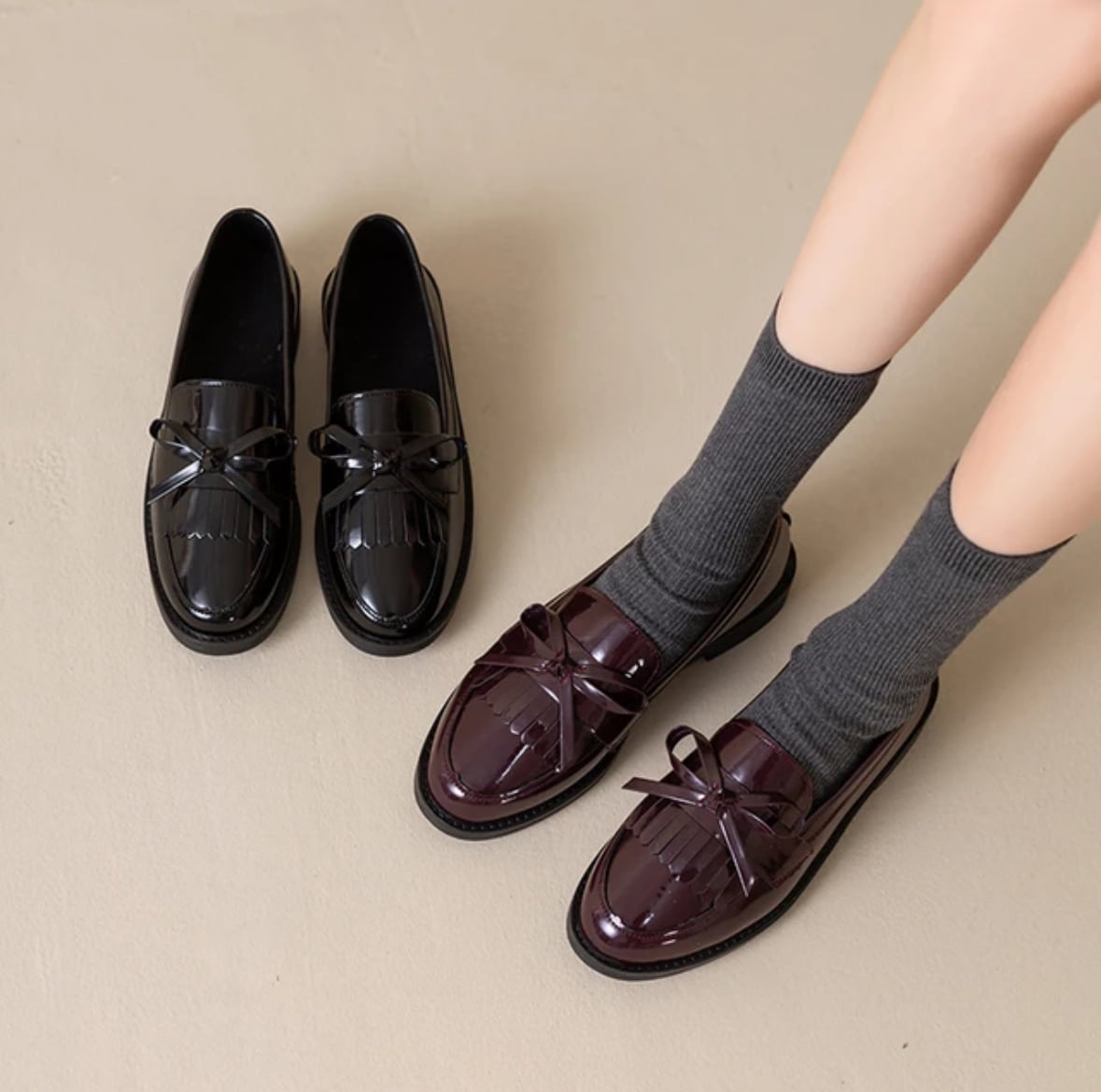 履くだけでクラシカルな雰囲気を演出し、プリーツスカートやスラックス、ジャージまでどんなコーデにも馴染みやすいアイテムです。
