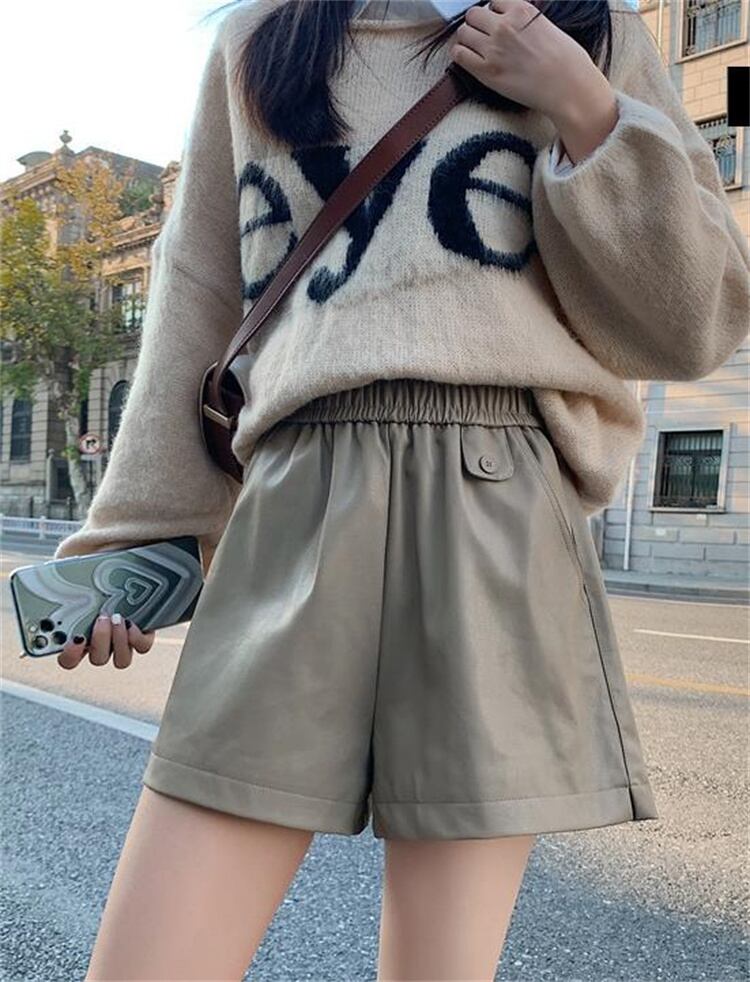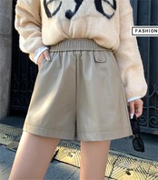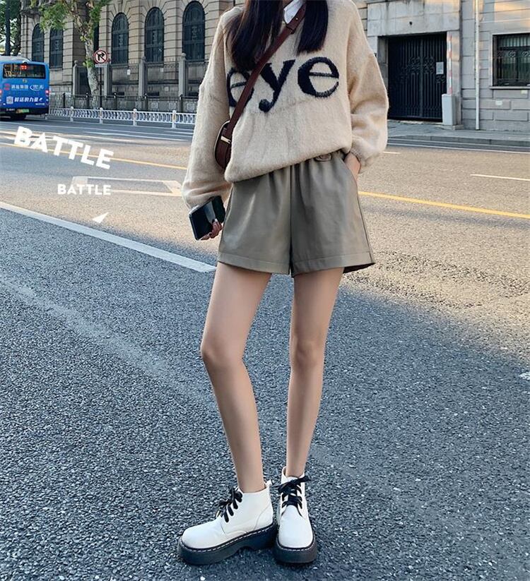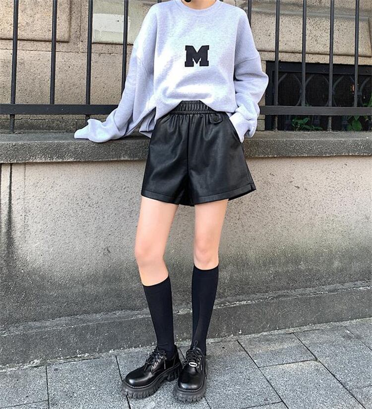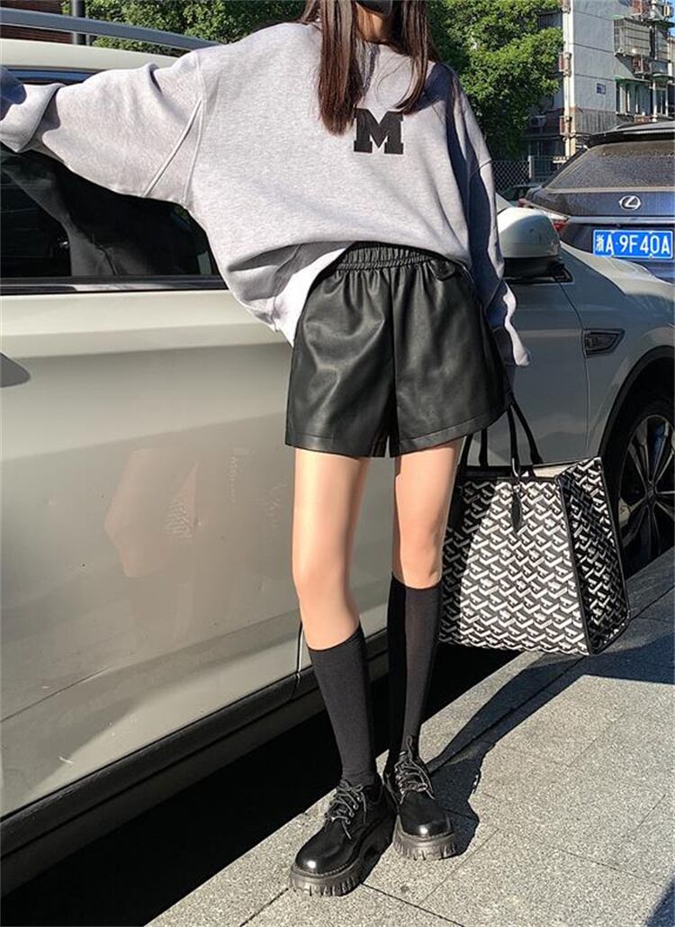 定番のシンプルなデザインで着回ししやすいフェイクレザーショートパンツ。